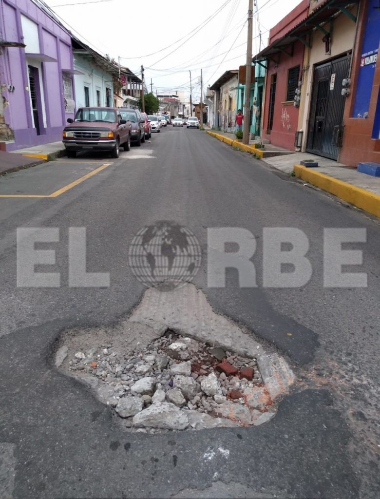 Cuando llueve no se ven los enormes agujeros, y pone en peligro a automovilistas y a las personas que transitan por el lugar.