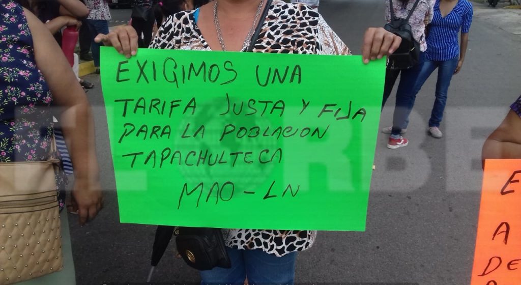 Protestan usuarios del comité de agua por altos costos en las tarifas de consumo de agua, y exigen solución al Presidente Municipal de Tapachula, Oscar Gurria Penagos.