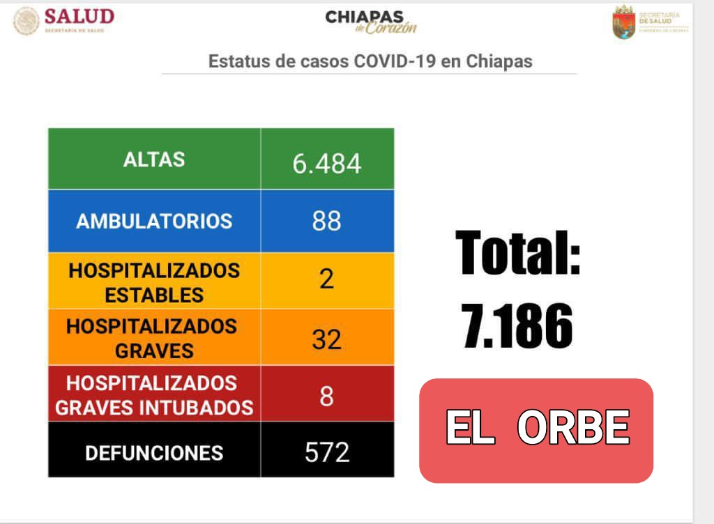 La Secretaría de Salud en Chiapas reportó este lunes que más de 6 mil pacientes se han recuperado de Covid-19 en la entidad.