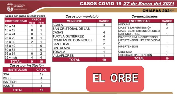 Los nuevos pacientes se presentaron en los municipios de Acala, San Cristóbal de Las Casas y Tuxtla Gutiérrez, cuatro cada uno; Comitán y San Lucas, dos cada uno; y Cintalapa, Tonalá y Villaflores, un caso cada uno.
