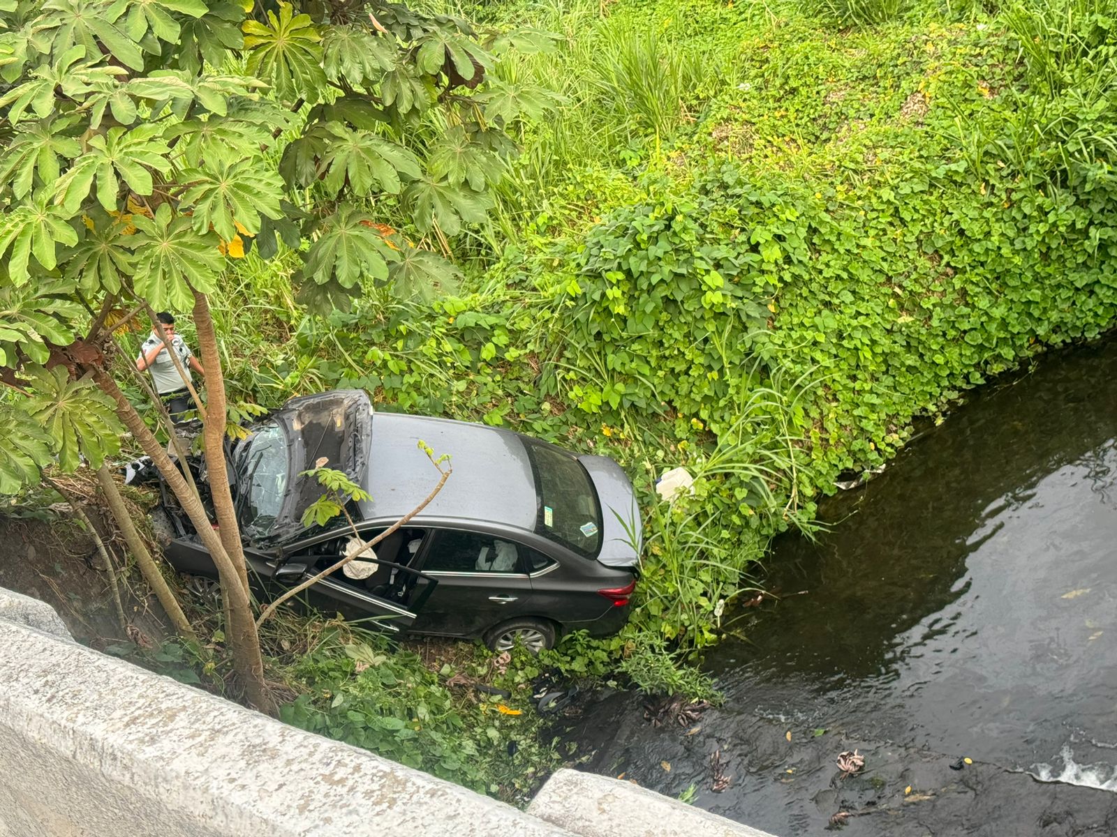 El vehículo terminó en un barranco cercano al río, donde fue abandonado, Únicamente daños materiales.