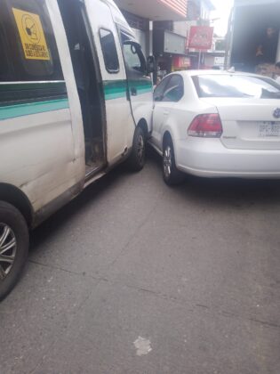 Un accidente automovilístico se registró en la 9ª calle poniente entre 8ª y 10ª Avenida Norte de la colonia Centro, al momento de que el conductor de un vehículo marca Volkswagen tipo Jetta de color blanco, realizó corte de circulación a una colectiva de la Ruta El Vergel, dejando como resultado únicamente daños materiales, Los conductores llegaron a un arreglo en la reparación de los daños.