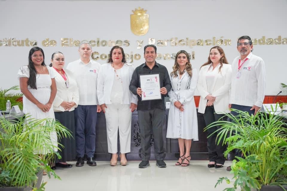 Tuxtla Gutiérrez, Chiapas a 9 de junio 2024.- El Instituto de Elecciones y Participación Ciudadana de Chiapas, entrega constancia de mayoría y validez que acredita a Eduardo Ramirez Aguilar como Gobernador Electo. El Orbe