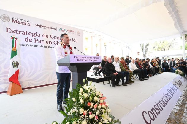 Durante la presentación de la Estrategia de Construcción de Paz en Chiapas, encabezada por la secretaria de Gobernación, Rosa Icela Rodríguez Velázquez, y el secretario de Seguridad y Protección Ciudadana, Omar García Harfuch, en San Cristóbal de Las Casas, el gobernador Eduardo Ramírez Aguilar sostuvo que con esta iniciativa, que busca abordar las causas profundas de la violencia y promover la paz y la seguridad en las comunidades, queda de manifiesto la importancia que la entidad tiene para la Federación.