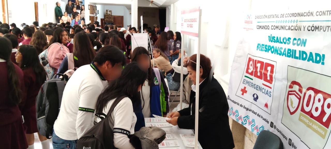 Personal del Centro de Atención de Llamadas de Emergencias (CALLE 9-1-1) Comitán, acudieron al teatro de la ciudad para participar en la Jornada de la Paz, donde mediante pláticas dieron a conocer información referente al aplicativo C5 Pakal, uso responsable del número de emergencia 9-1-1 y denuncia anónima 089.