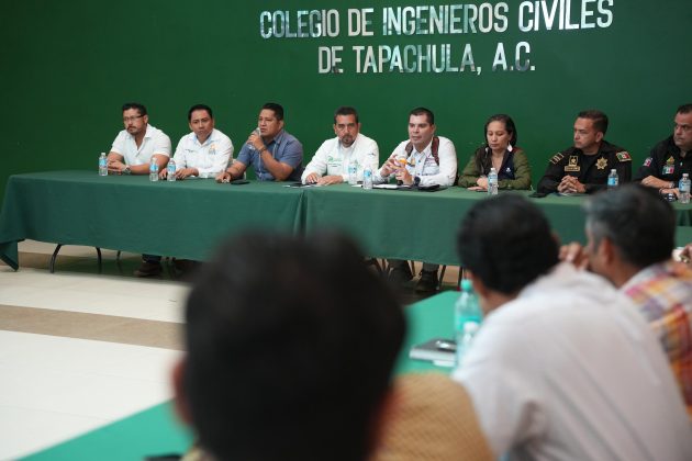 Tapachula, Chiapas; 25 de junio de 2025.- En un esfuerzo por fomentar la seguridad integral de la región y reforzar los vínculos entre las autoridades y el sector civil, la Secretaría de Seguridad del Pueblo (SSP), que lidera el doctor y piloto aviador, Óscar Alberto Aparicio Avendaño, llevó a cabo una reunión de trabajo con los representantes de los colegios de la Frontera Sur, en el Colegio de Ingenieros Civiles de Tapachula.
