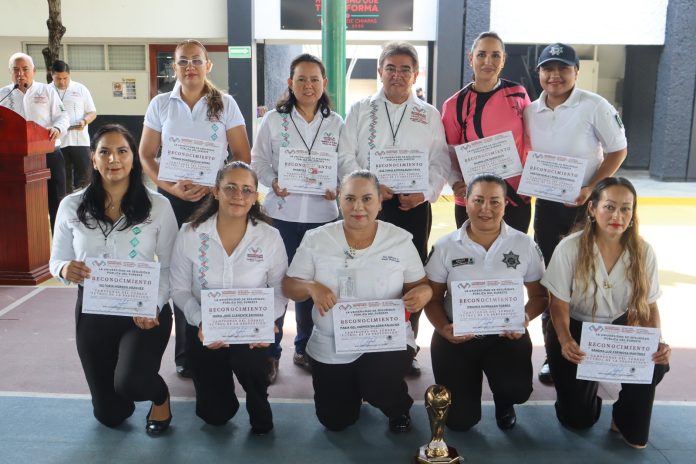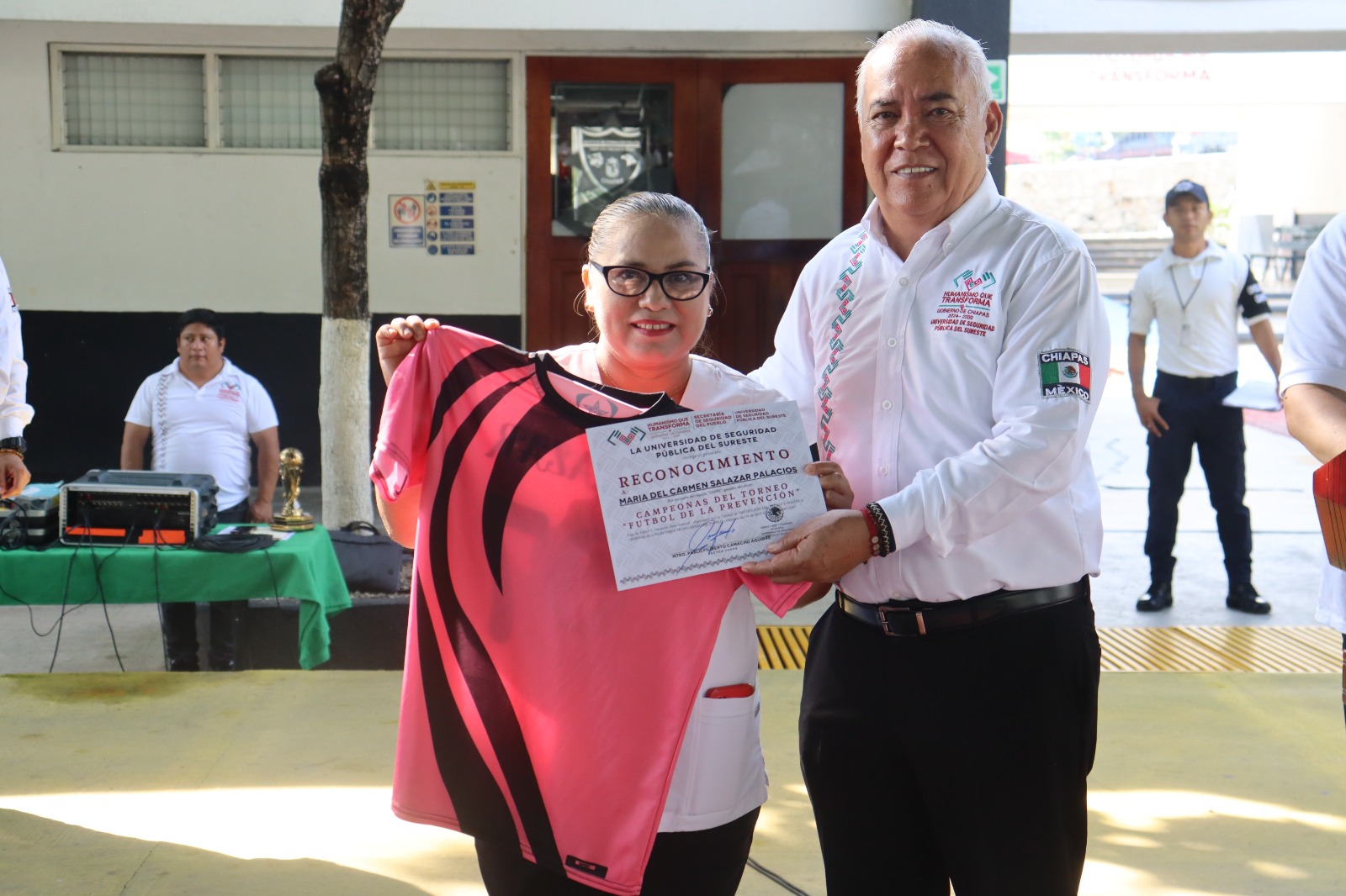 Tuxtla Gutiérrez, Chiapas; 07 de julio de 2025.- La Universidad de Seguridad Pública del Sureste (USEPS), de la Secretaría de Seguridad del Pueblo (SSP), que encabeza el doctor y piloto aviador, Óscar Alberto Aparicio Avendaño, realizó la entrega de reconocimientos al equipo campeón del Torneo “Fútbol de la Prevención”, liga de Fútbol 7 en la categoría libre femenil, organizada por la Unidad de Prevención del Delito y Política Criminal.