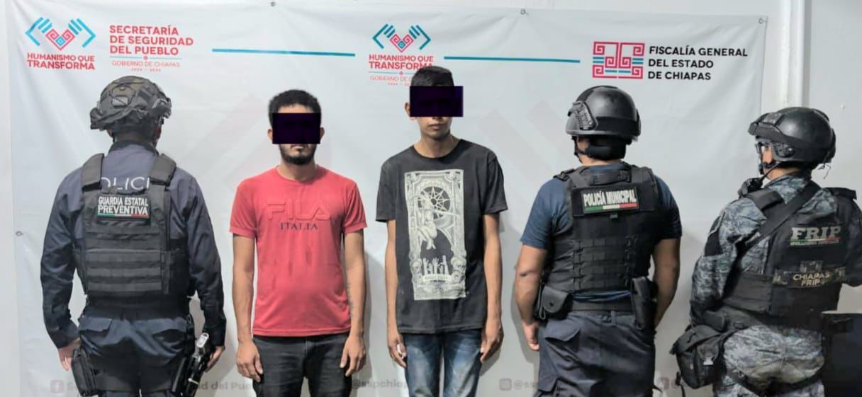 En operativo, la Secretaría de Seguridad del Pueblo (SSP) a través de la Fuerza de Reacción Inmediata Pakal (FRIP) y la Guardia Estatal Preventiva, en coordinación con la Fiscalía General del Estado (FGE) y la Secretaría de Seguridad y Protección Ciudadana (SSPC) del Gobierno Federal, detuvieron a dos masculinos por el probable delito de robo con violencia agravada en el municipio de Tuxtla chico.