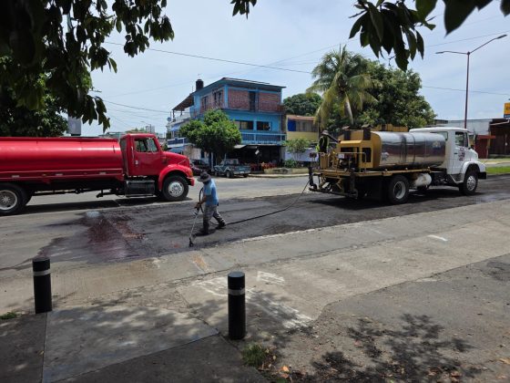 Para dar seguimiento a las acciones del Programa “Tapachula rueda seguro”, el Ayuntamiento de Tapachula a través de la Secretaría de Obras Públicas, continúa los trabajos de bacheo con mezcla asfáltica en caliente en diversos sectores, estas acciones forman parte de los esfuerzos permanentes para mejorar la movilidad urbana eficiente en beneficio de la ciudadanía.