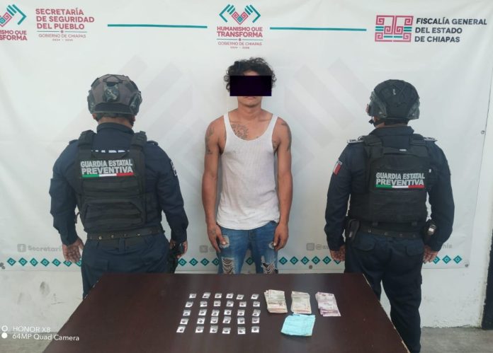 La Secretaría de Seguridad del Pueblo (SSP) a través de la Guardia Estatal Preventiva y la Fuerza de Reacción Inmediata Pakal (FRIP) en coordinación con la Fiscalía General del Estado (FGE) y la Secretaría de Seguridad y Protección Ciudadana (SSPC) del Gobierno Federal, detuvieron a un masculino con presuntos narcóticos en el municipio de Tapachula.