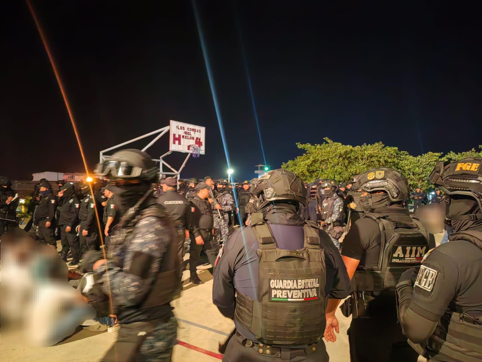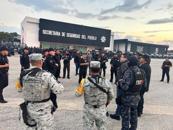 En estos trabajos, se contó con una fuerza de mil 200 elementos, pertenecientes a la Fuerza de Reacción Inmediata Pakal (FRIP), Guardia Estatal Preventiva, Guardia Estatal de Caminos, Guardia Estatal Fuerza Ciudadana, Guardia Estatal Complementaria, Guardia Estatal Cibernética, Coordinación de la Subsecretaría de Inteligencia, Agencia de Inteligencia e Investigación Ministerial (AIIM), Fiscalía General del Estado (FGE), Guardia Nacional (GN) y Secretaría de Defensa Nacional (Defensa).