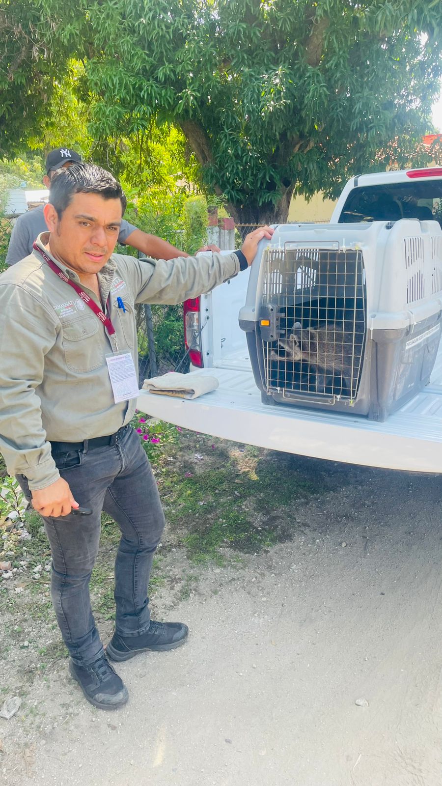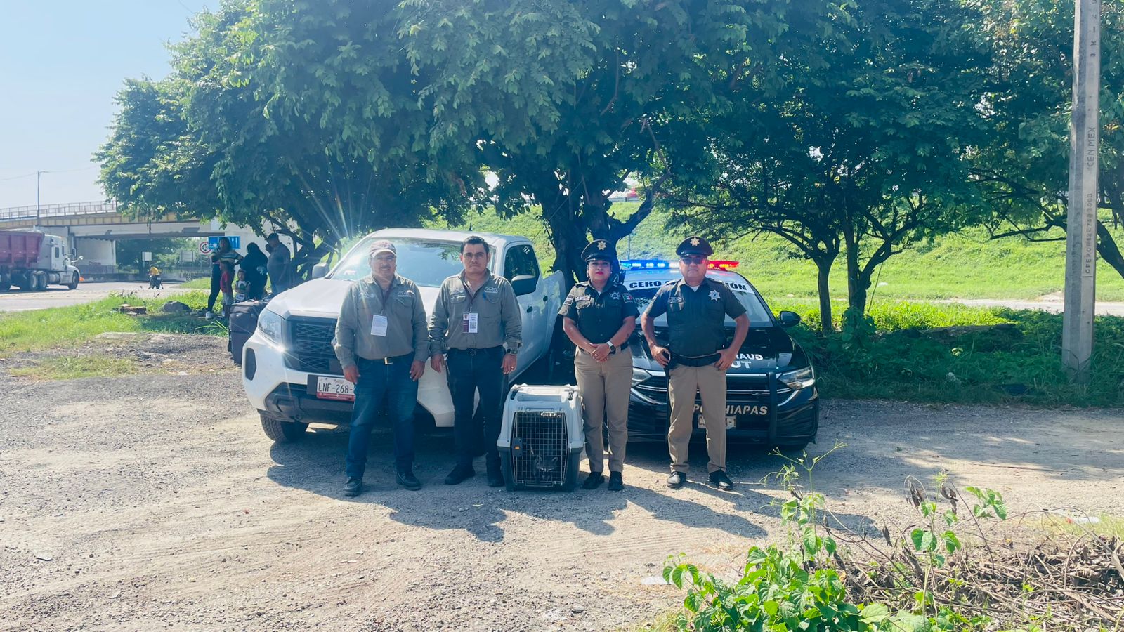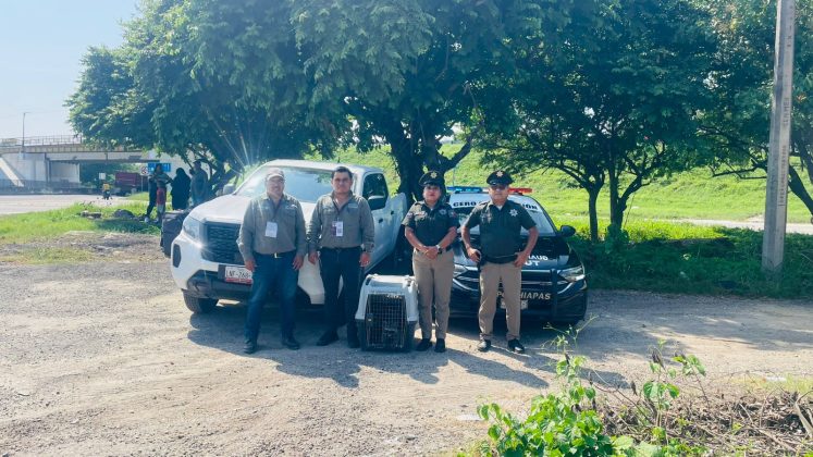 La Secretaría de Seguridad del Pueblo (SSP) través de la Subsecretaría Vial Preventiva y de Turismo, en coordinación con la Procuraduría Federal de Protección al Ambiente (PROFEPA), rescatan a un mapache, especie en peligro de extinción en el municipio de Tonalá.