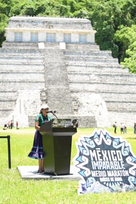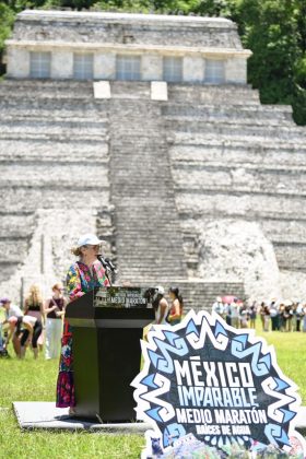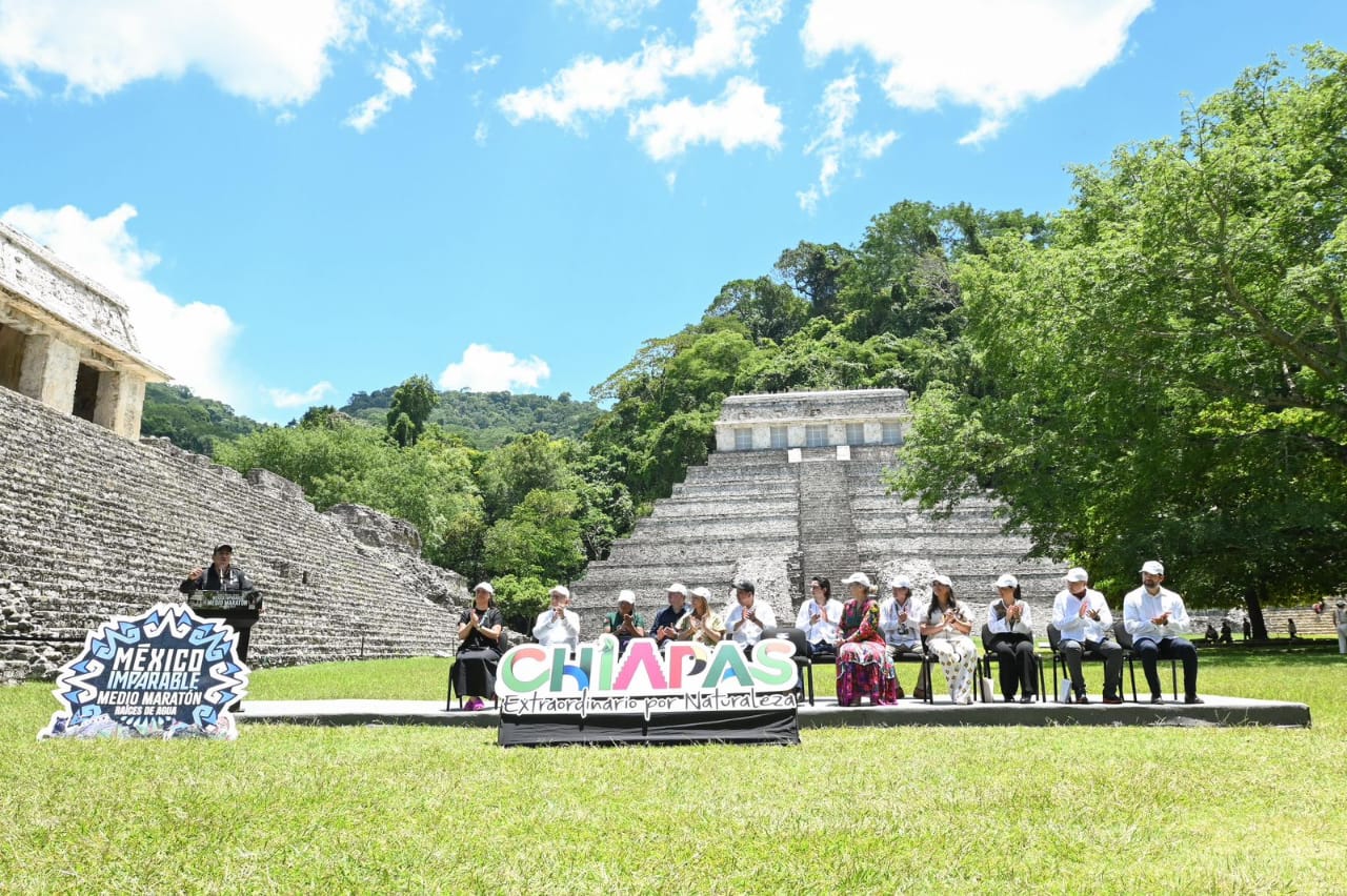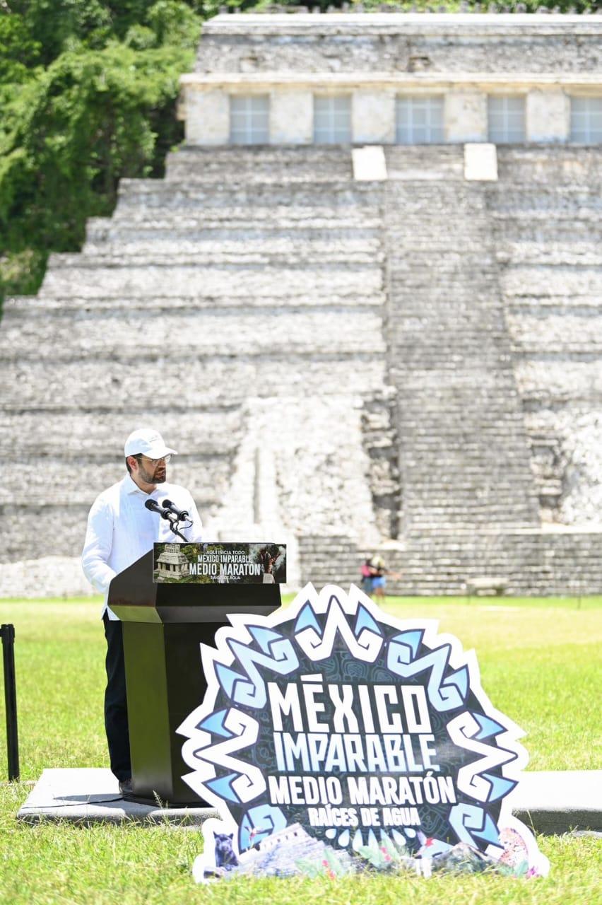 Desde la zona arqueológica de Palenque, el Gobierno de México, en coordinación con el Gobierno de Chiapas, presentaron el medio maratón México Imparable, Raíces de Agua, que se realizará el próximo 14 de septiembre y es el inicio de un serial de cuatro carreras que se realizarán en caminos sagrados de la Ciudad de México, Oaxaca y Chihuahua, con el objetivo de enaltecer las culturas de los pueblos originarios.