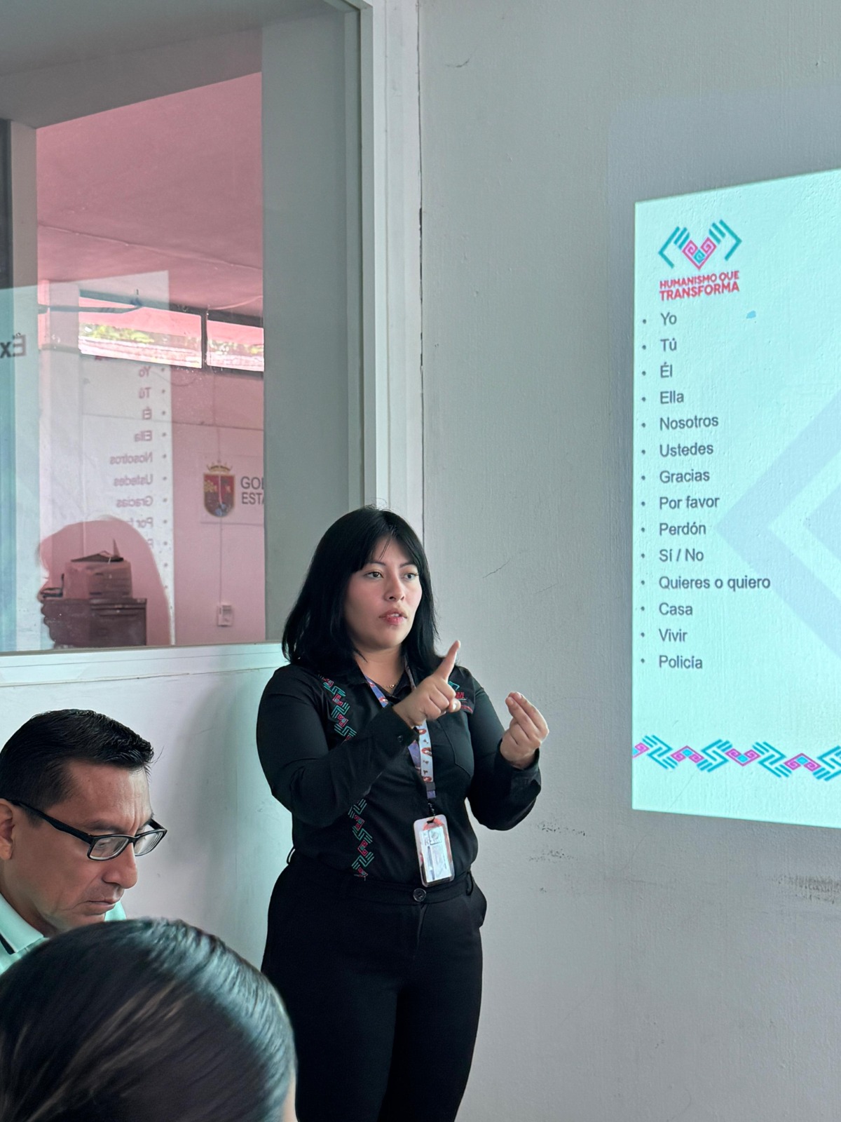 Durante el taller, los elementos participantes reconocieron que la LSM no solo es un idioma, sino también un puente hacia la inclusión y el respeto a los derechos humanos. Brindándoles conocimientos básicos sobre esta lengua, basada en gestos, movimientos y expresiones faciales, además, se les motivó a seguir practicando para perfeccionar sus habilidades comunicativas.