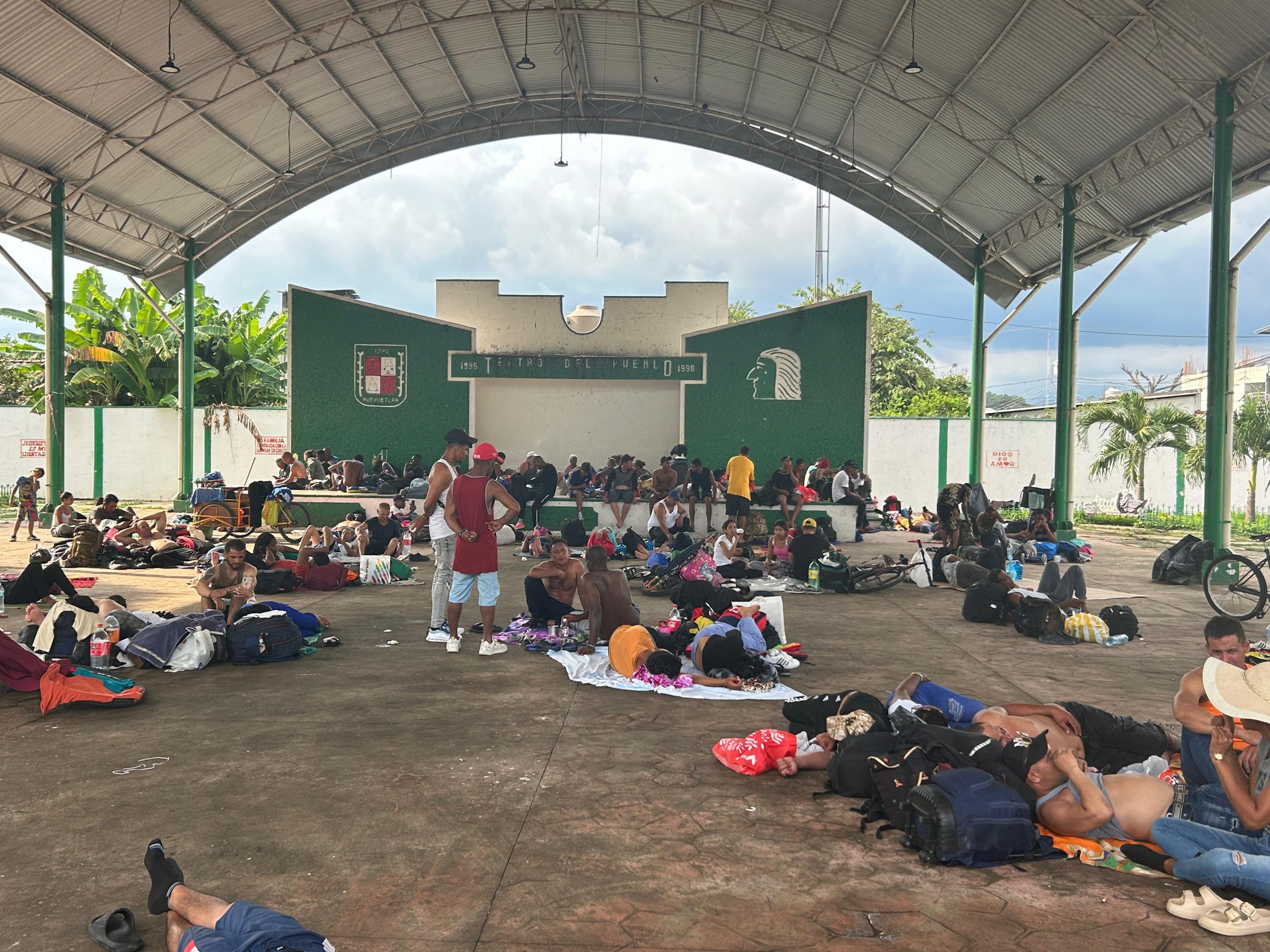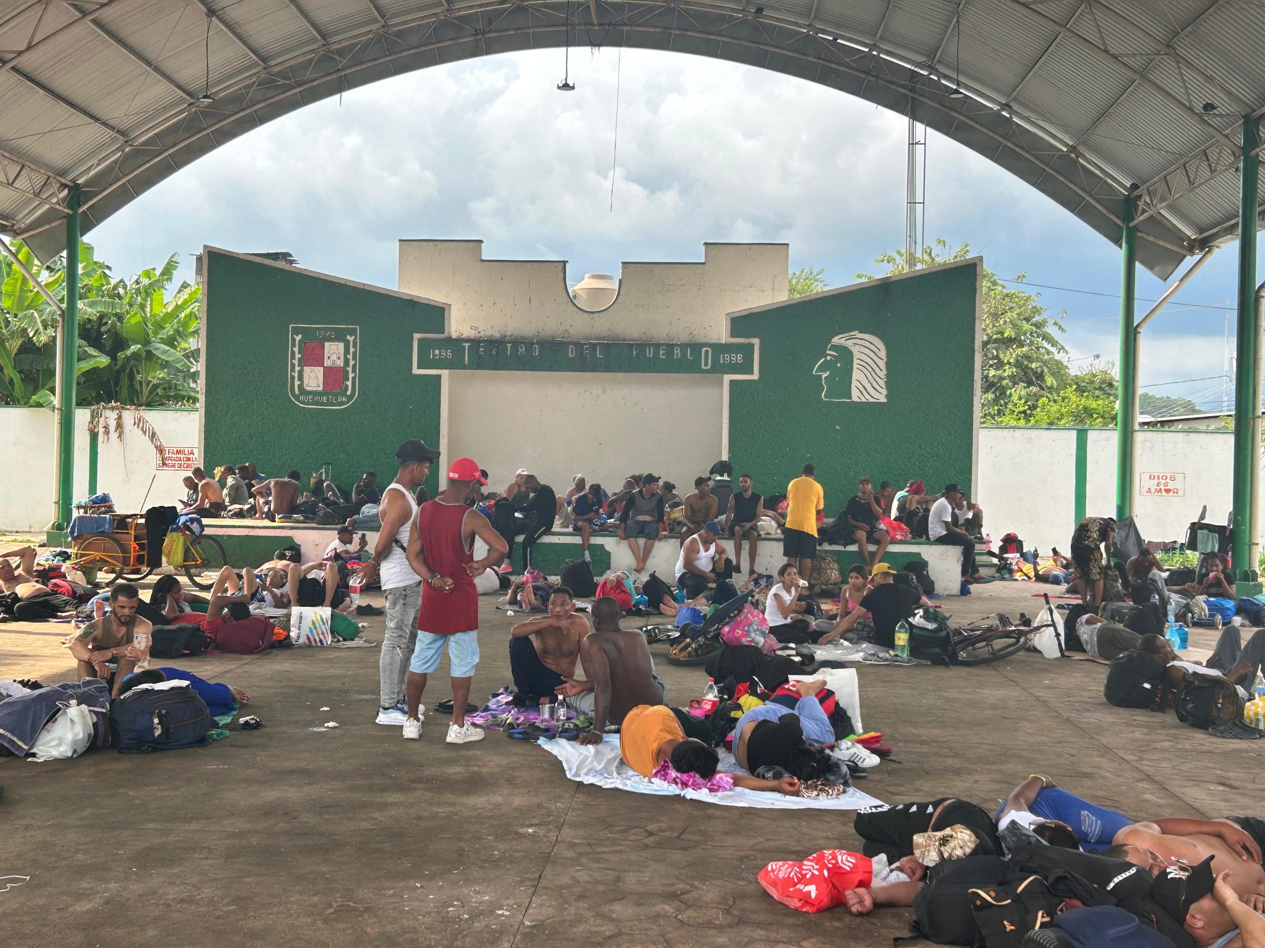 Huehuetan, Chiapas a 6 de Agosto 2025.- Luego de partir la caravana de Migrantes del Municipio de Tapachula, este Miercoles alrededor de las 13:00 horas un aproximado de 200 Migrantes de Diferentes Nacionalidades, arribó al parque Central Cinco de Mayo de Huehuetán Estación.