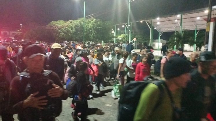 La caravana de migrantes que salió la mañana del miércoles del municipio de Tapachula. Inicio su travesía a las 4:30 horas de esta madrugada con el objetivo de alcanzar el municipio de Huixtla y culminar en la ciudad de México.
