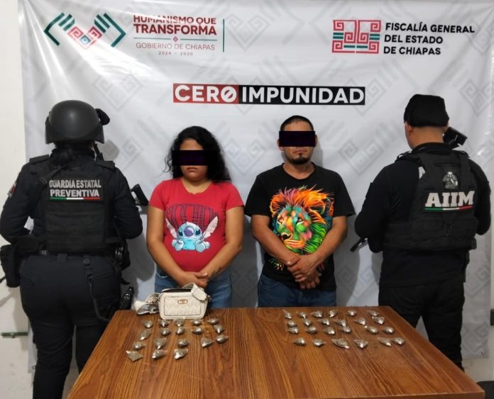 La Secretaría de Seguridad del Pueblo (SSP) a través de la Fuerza de Reacción Inmediata Pakal (FRIP) y la Guardia Estatal Preventiva, en coordinación con la Fiscalía General del Estado (FGE) y la Secretaría de Seguridad y Protección Ciudadana (SSPC) del Gobierno Federal, detuvieron a dos personas por el probable delito contra la salud en su modalidad de narcomenudeo, en el municipio de Motozintla.