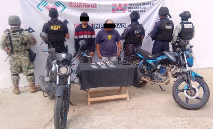 La Secretaría de Seguridad del Pueblo (SSP) a través de la Guardia Estatal Preventiva, en coordinación con la Agencia de Investigación e Inteligencia Ministerial (AIIM) de la Fiscalía General del Estado (FGE), la Guardia Nacional, Ejército Mexicano y la Secretaría de Seguridad y Protección Ciudadana (SSPC) del Gobierno Federal, detuvieron a dos personas del sexo masculino por los probables delitos de violación a la Ley Federal de armas de fuego y contra la salud, en el municipio de Villaflores.