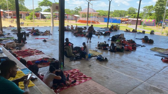 Pijijiapan, Chiapas 12 de Agosto del 2025.- Migrantes de diversas nacionalidades que partieron desde el miércoles de la semana pasada de Tapachula y recorren la costa de Chiapas, llegaron este martes a la comunidad de Galeana, perteneciente al municipio de Pijijiapan, en la costa de Chiapas.
