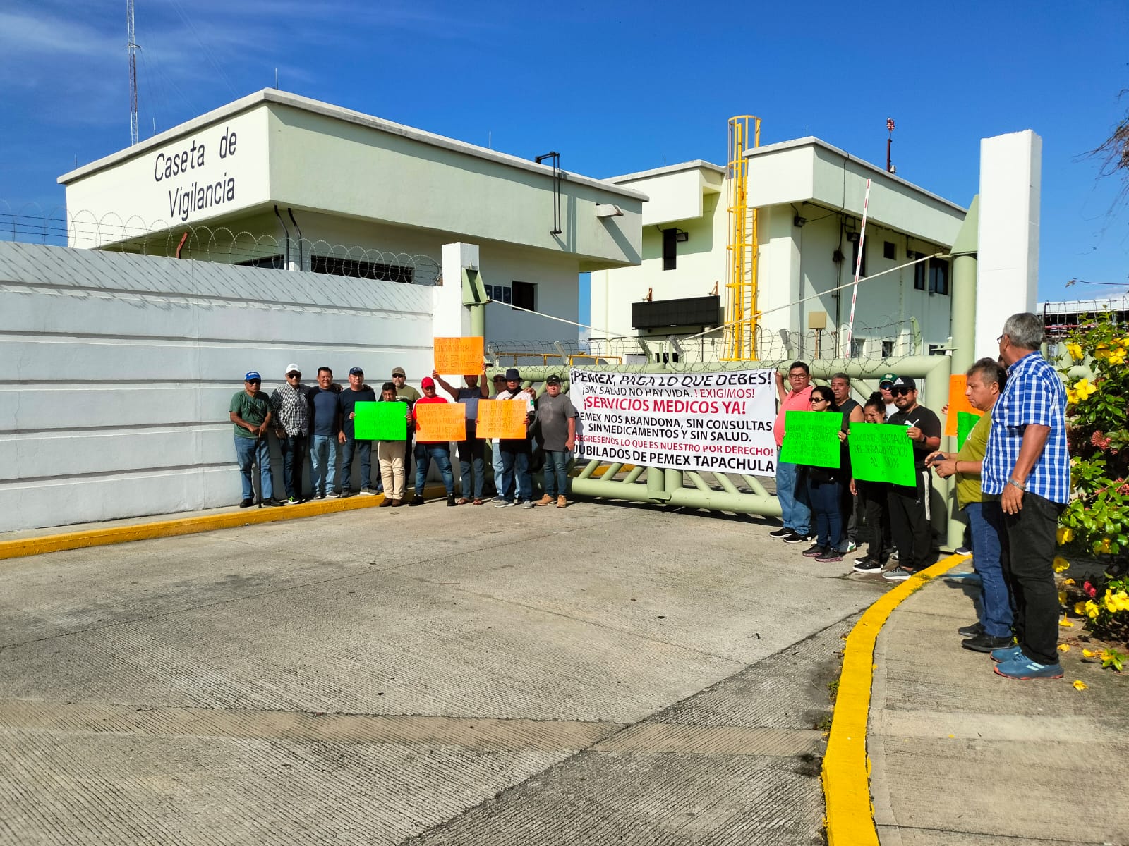 A tres días de que un grupo de jubilados de Petróleos Mexicanos (Pemex) tomara las instalaciones de la Terminal de Almacenamiento y Reparto (TAR) en Tapachula, aún no han recibido respuesta por parte de las autoridades de la empresa. Los ex trabajadores exigen atención médica, señalando que al parecer las pipas encargadas del reparto ya fueron pagadas.