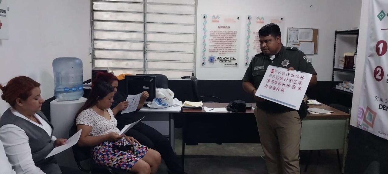 Agentes de la Guardia Estatal Vial Preventiva impartieron cursos de educación vial en los municipios de Villa Las Rosas, Chiapa de Corzo, Reforma, Teopisca, San Fernando, Venustiano Carranza y Ocosingo, a personal de empresa de agua embotellada, grupo pecuario San Antonio, Banco Azteca, pobladores de la colonia Ixtapilla y aspirantes a adquirir licencias de conducir.