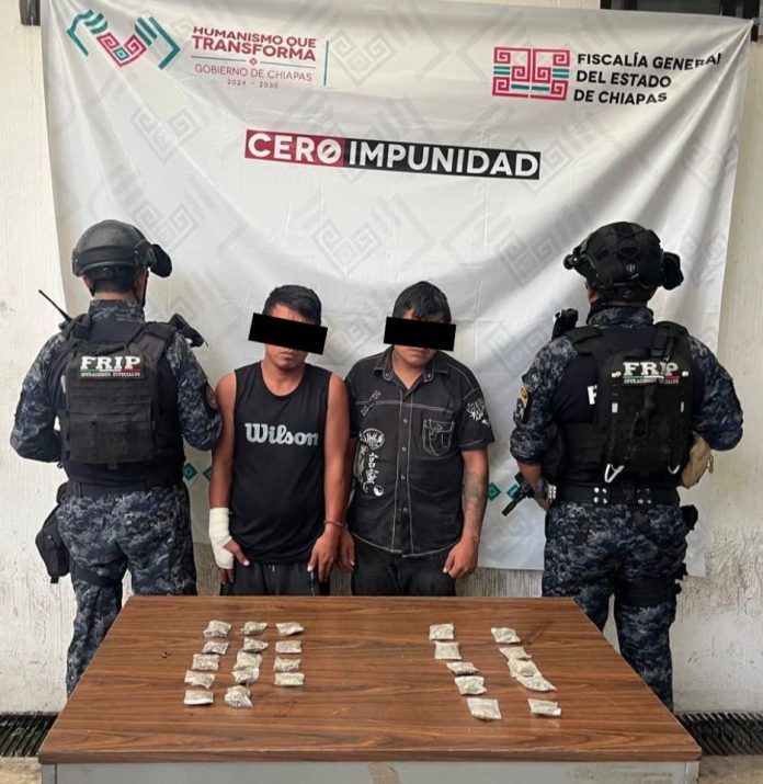 La Secretaría de Seguridad del Pueblo (SSP) a través de la Fuerza de Reacción Inmediata Pakal (FRIP) en coordinación con la Fiscalía General del Estado (FGE) y la Secretaría de Seguridad y Protección Ciudadana (SSPC) del Gobierno Federal, detuvieron a dos personas con presunta marihuana en el municipio de Tapachula.