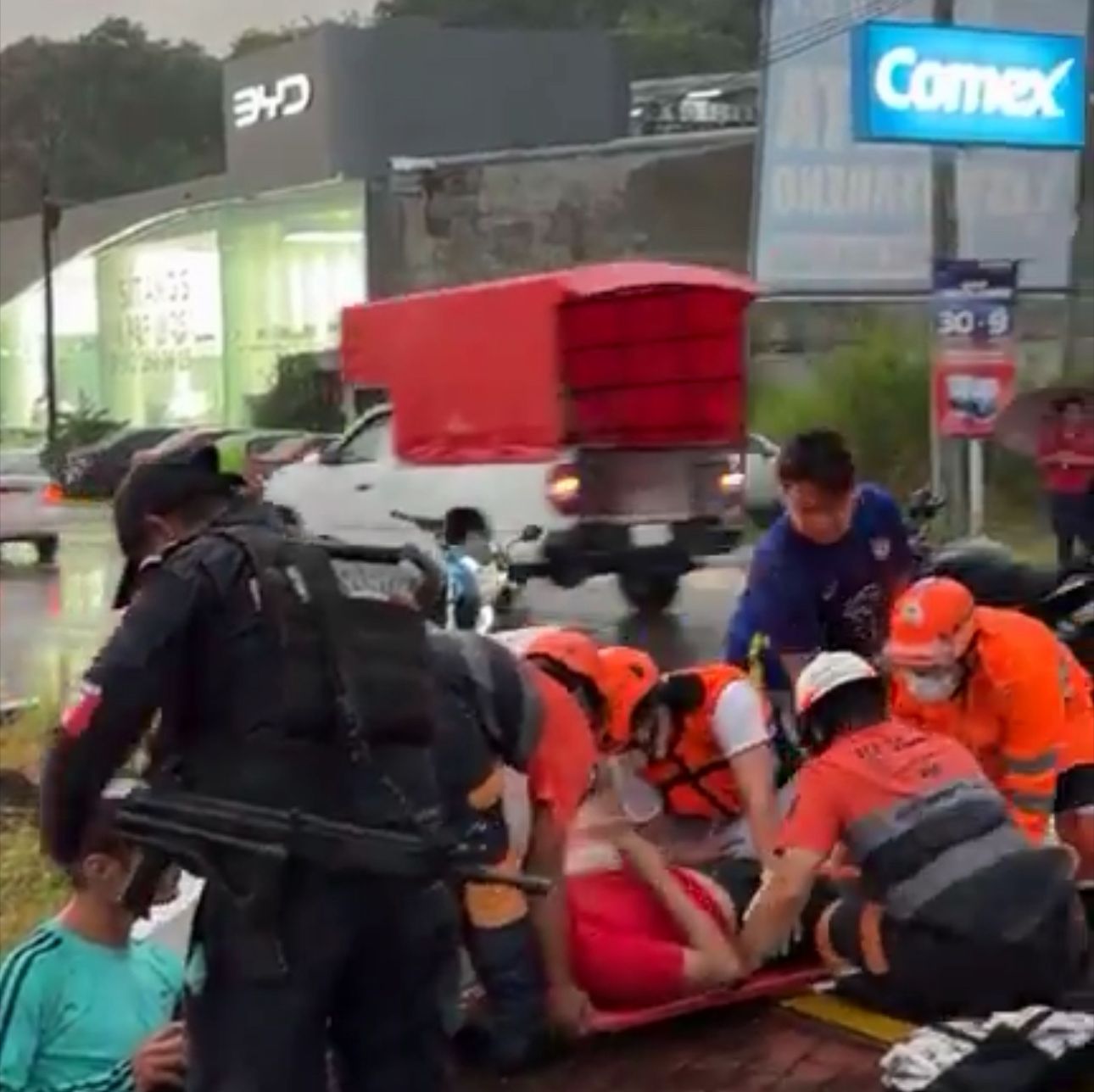 Testigos señalaron que el conductor de la camioneta intentó huir tras el percance, pero otros motociclistas lo alcanzaron y obligaron a detenerse. Posteriormente, elementos de la Guardia Nacional y la Policía Municipal aseguraron al responsable y lo llevaron de regreso al lugar del accidente.