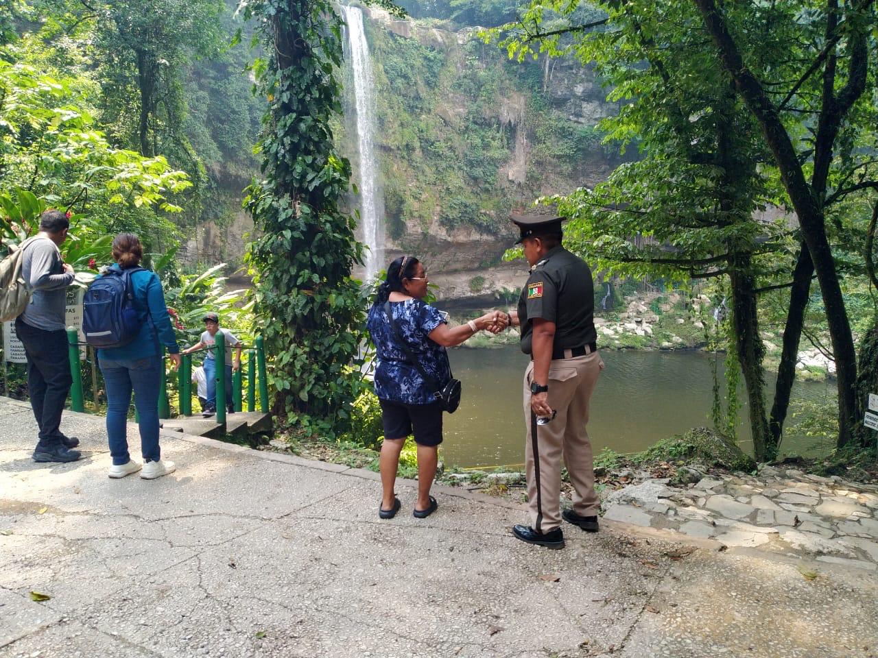 La Secretaría de Seguridad del Pueblo (SSP) que encabeza el doctor y piloto aviador, Óscar Alberto Aparicio Avendaño, a través de la Subsecretaría Vial Preventiva y de Turismo a cargo del comisario jefe Guillermo López Murúa, en coordinación con la dirección de la Guardia Estatal de Turismo y la delegación del municipio de Palenque, llevaron a cabo acciones de seguridad y proximidad social, en las Cascadas Misol-ha.