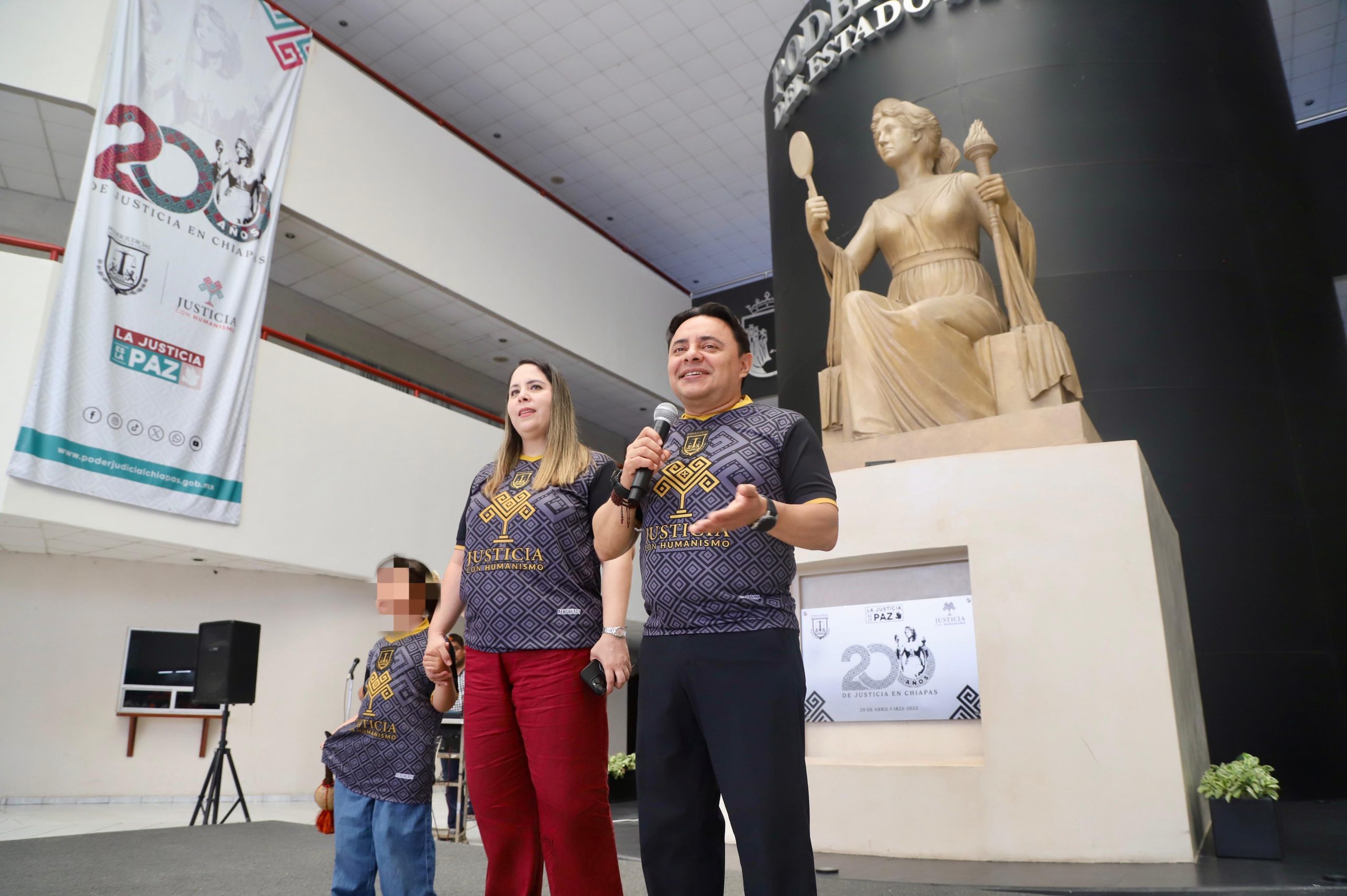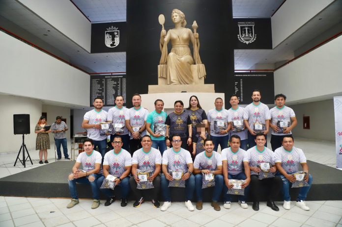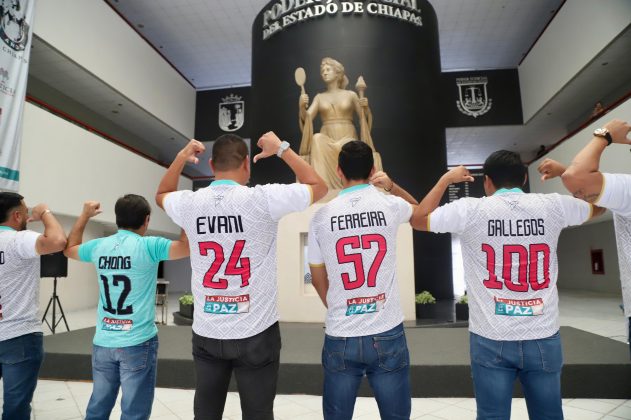El Voluntariado del Poder Judicial del Estado de Chiapas, que encabeza la presidenta Dalal Rabban Castell, junto al magistrado presidente del Poder Judicial del Estado, Juan Carlos Moreno Guillén, realizaron la entrega de uniformes deportivos en beneficio de equipos integrados por personal de la familia judicial.
