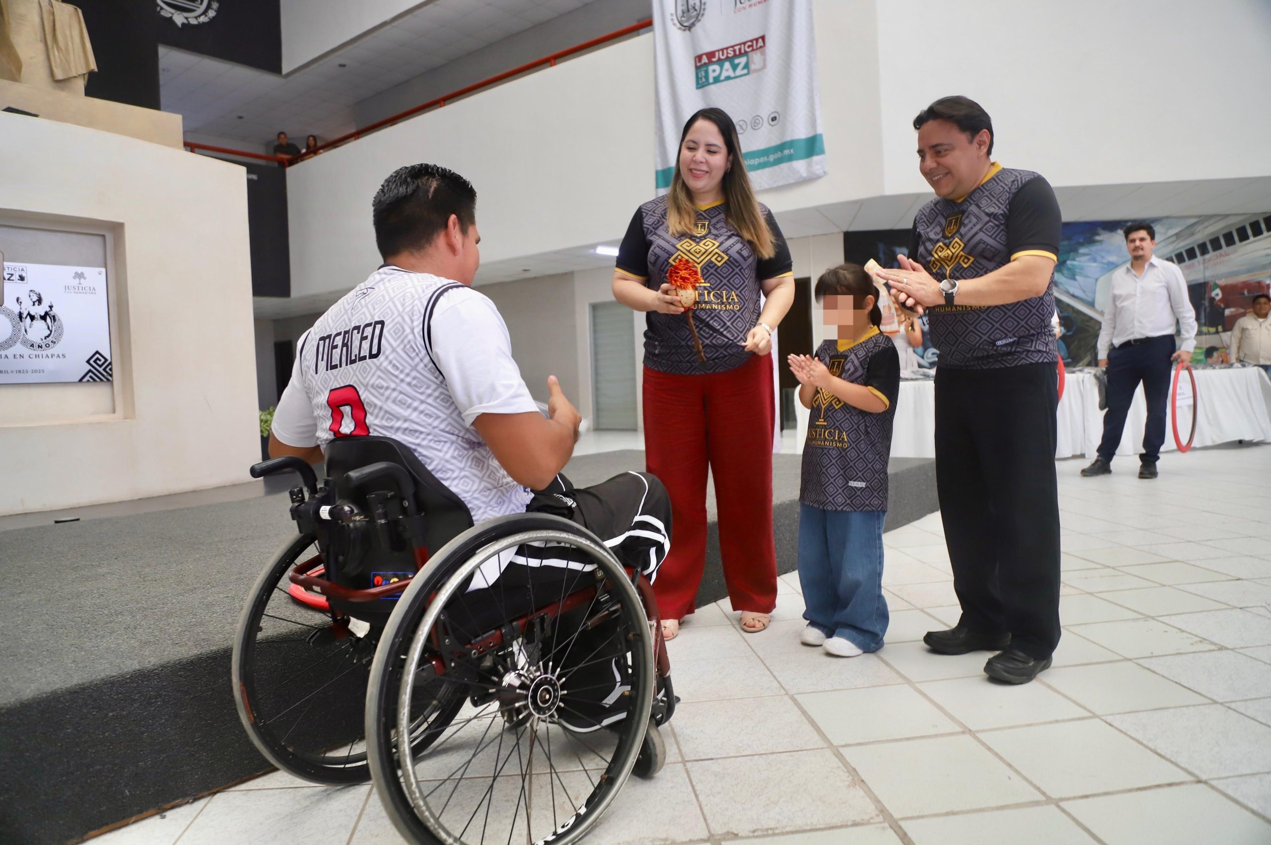 Al finalizar el evento, el magistrado presidente Moreno Guillén y la presidenta Rabban Castell se tomaron fotografías con los equipos beneficiados, refrendando el compromiso del Voluntariado y del Poder Judicial de Chiapas de seguir impulsando acciones que promuevan la inclusión, la sana convivencia desde el corazón de la justicia.