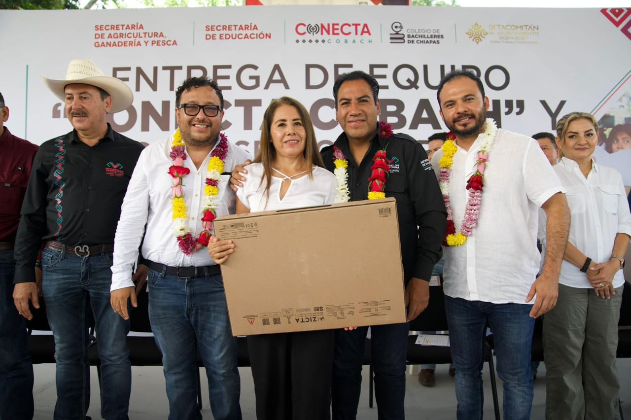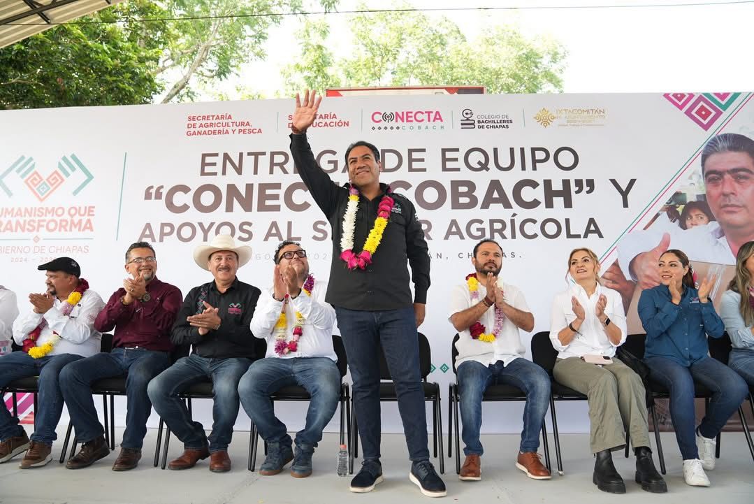 En Ixtacomitán, el mandatario entregó insumos agrícolas y equipamiento del programa Conecta Cobach a planteles de la zona Centro-Norte; supervisó la modernización del camino Ixtacomitán–Chapultenango y la rehabilitación del Centro de Salud en la localidad Emiliano Zapata. Subrayó que no le fallará a Chiapas porque se trata de un gobierno con autoridad moral y emanado del pueblo.