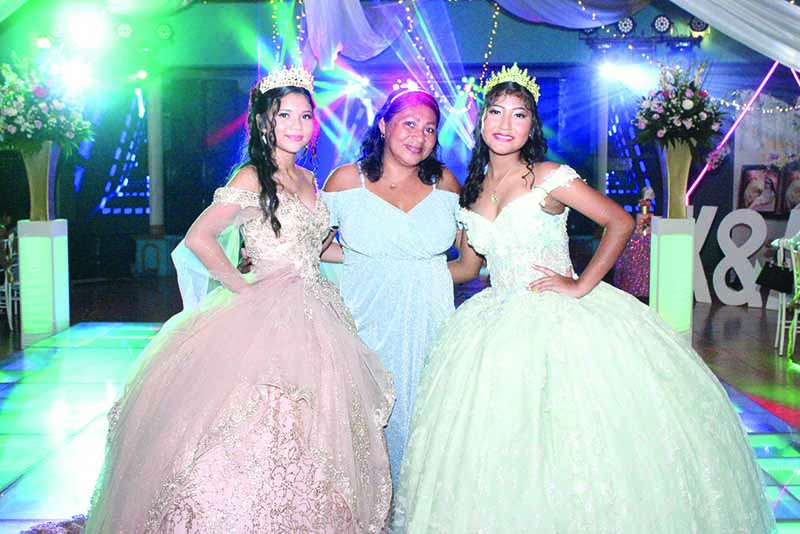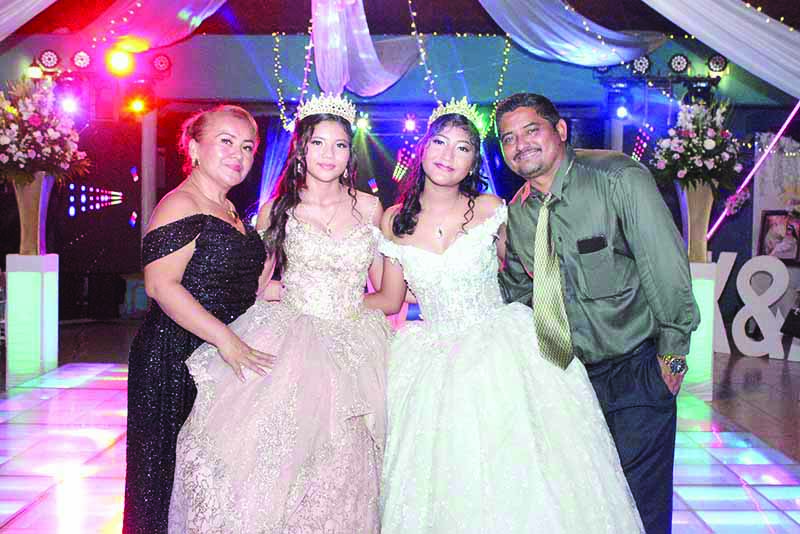 Con gran alegría, las hermanas Kristaly Jael Palomeque Hidalgo y Abigail Palomeque Santos, celebraron sus 15 años en una velada inolvidable. Kristaly lució un vestido dorado y Abigail un elegante vestido verde, acompañadas de sus padres David Palomeque Avendaño y Elvia Griselda Hidalgo Palomeque. Familiares y amigos disfrutaron de una noche llena de música y diversión que se prolongó hasta la madrugada.