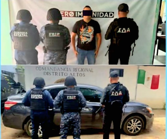 Con el fin de hacer cumplir la ley y garantizar el Estado de Derecho de la ciudadanía chiapaneca en operativo de seguridad, elementos de la fuerza interinstitucional en el barrio Maestros de México, detuvieron a Juan “N”, en posesión de un vehículo con reporte de robo.