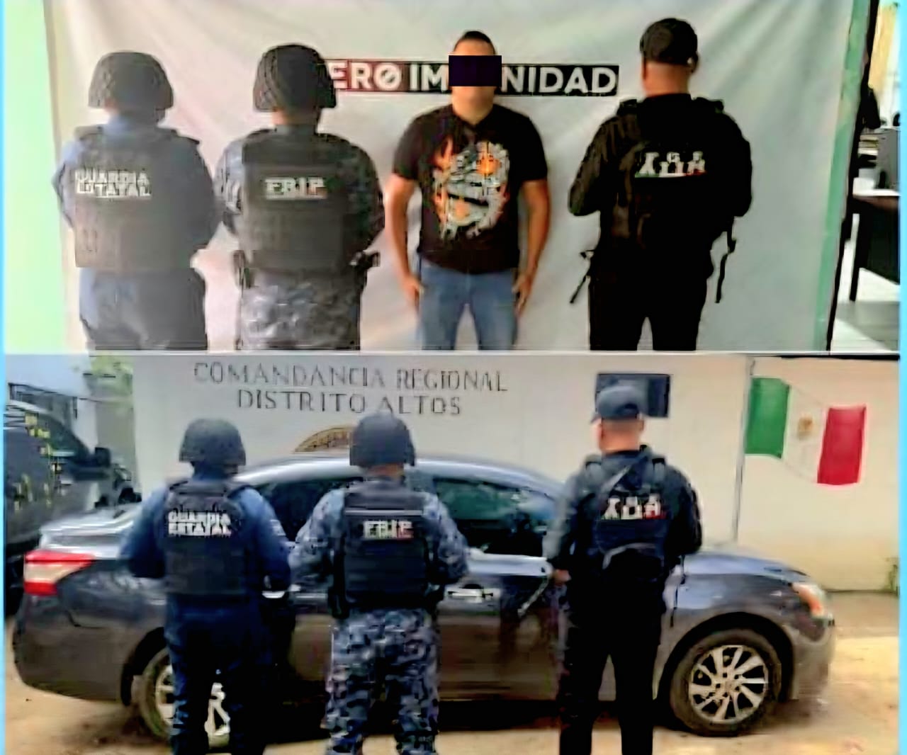 La Secretaría de Seguridad del Pueblo (SSP) a través de la Fuerza de Reacción Inmediata Pakal (FRIP) y la Guardia Estatal Preventiva, en coordinación con la Agencia de Investigación e Inteligencia Ministerial (AIIM) de la Fiscalía General del Estado (FGE) y la Secretaría de Seguridad y Protección Ciudadana (SSPC) del Gobierno Federal, en el municipio de San Cristóbal de las Casas, detuvieron a un masculino con vehículo con reporte de robo.