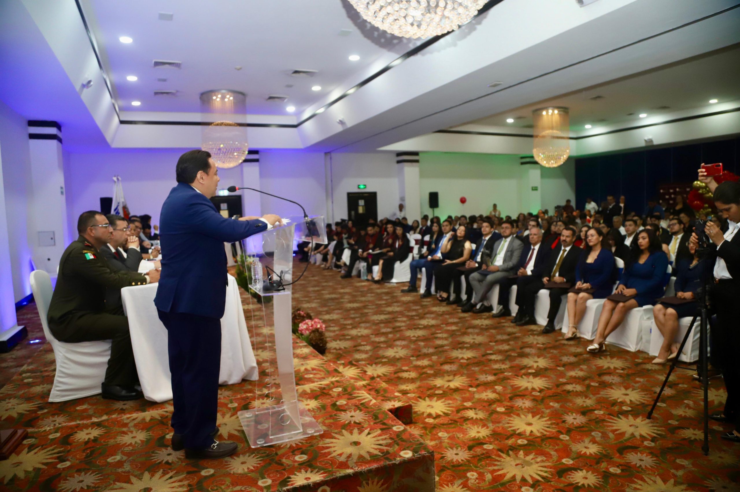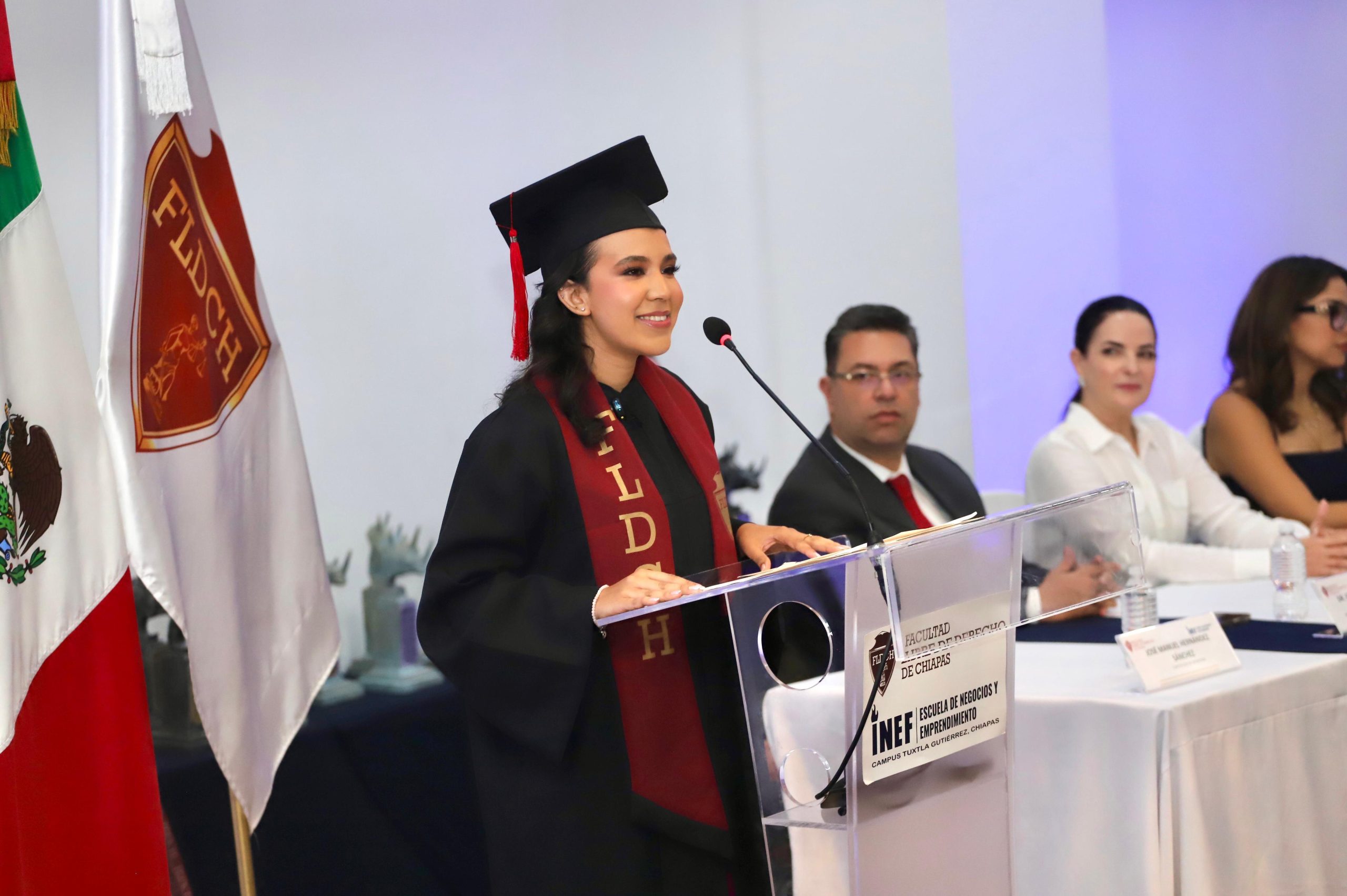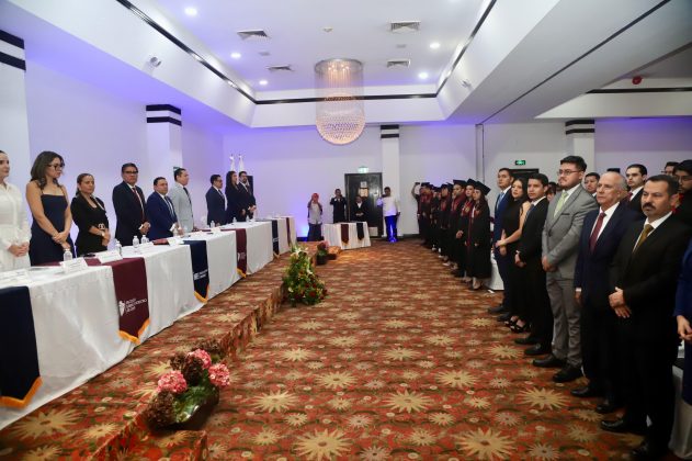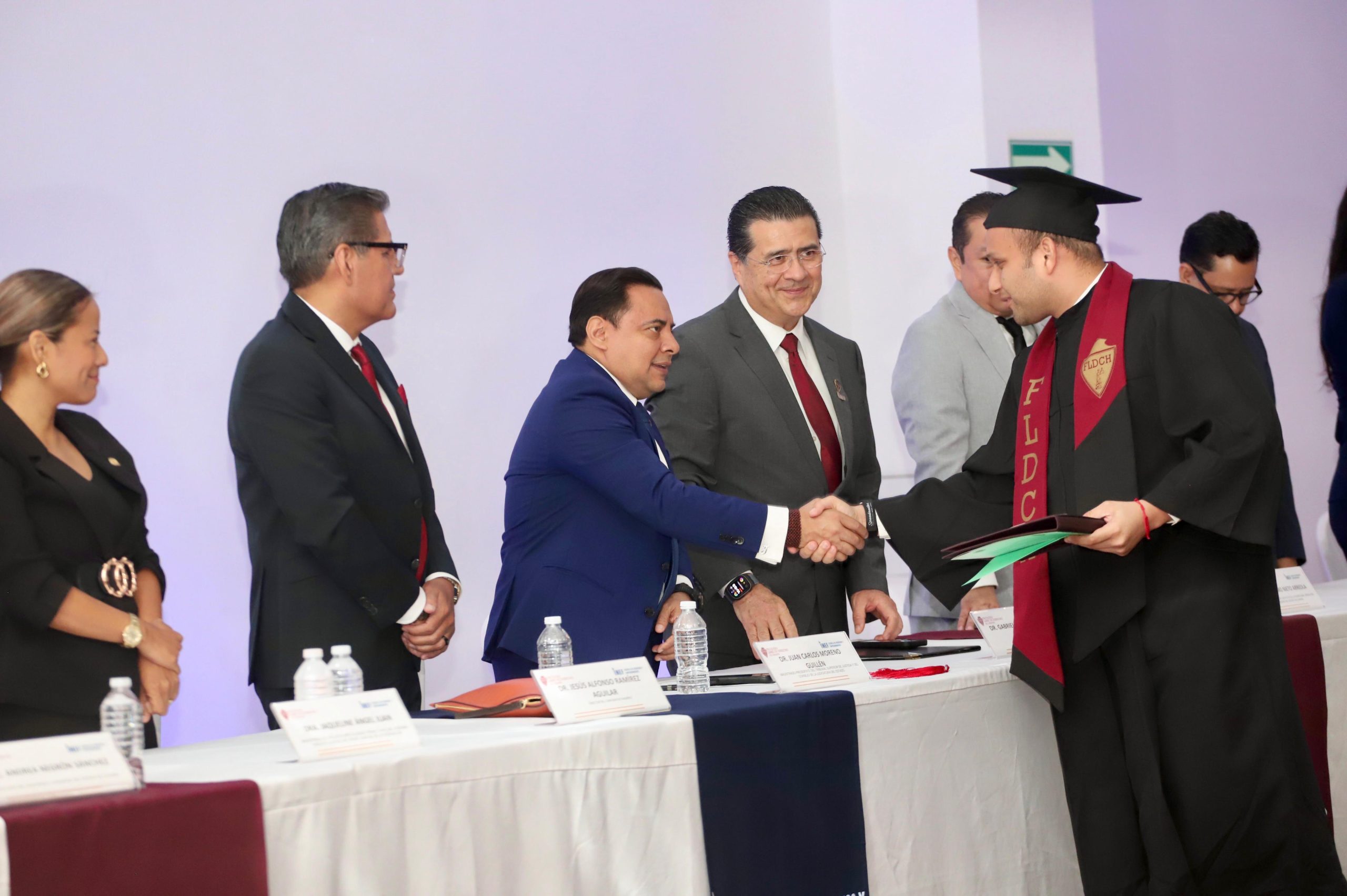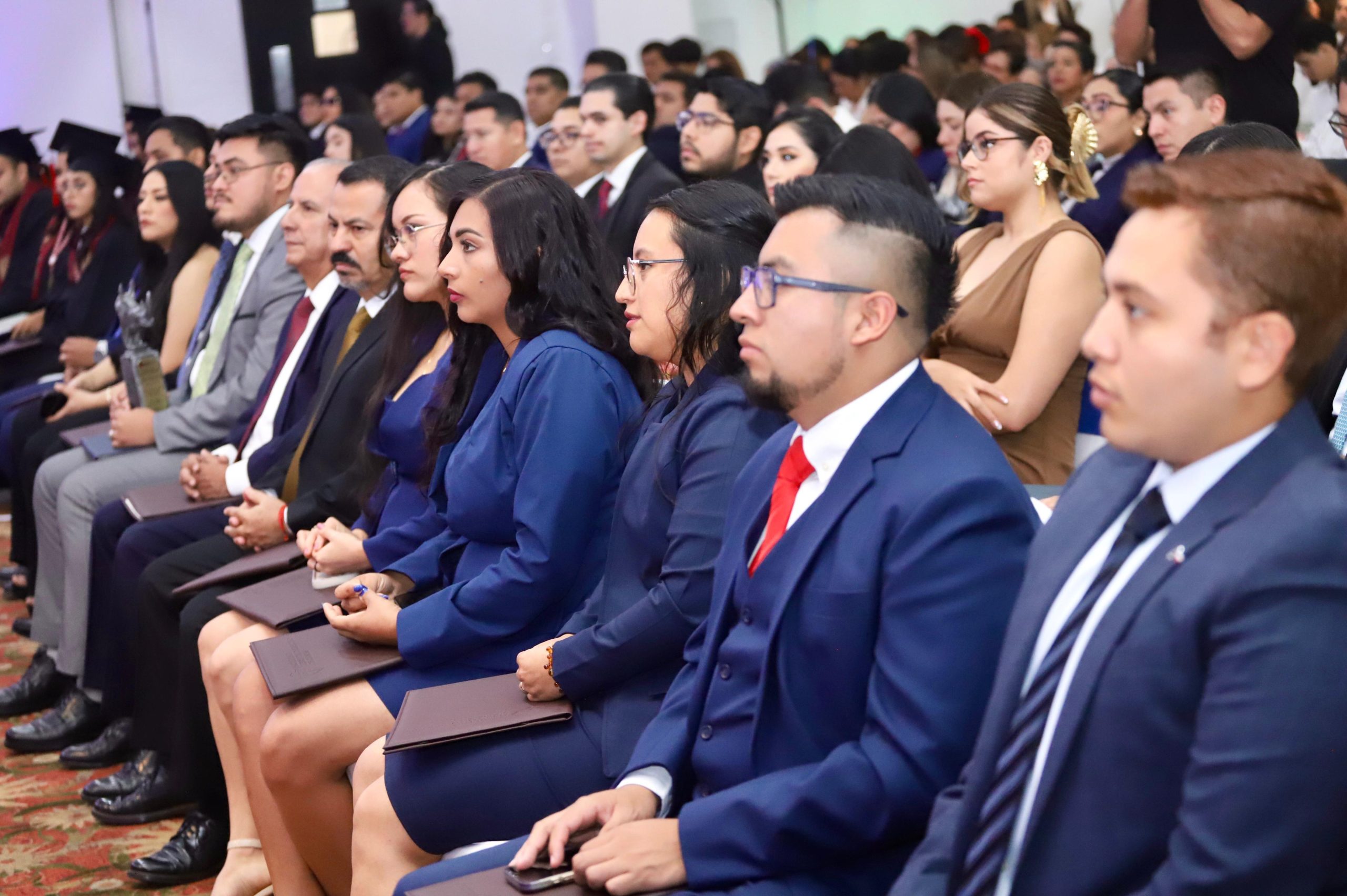 Asimismo, Moreno Guillén reconoció el esfuerzo de las y los graduados, y en el caso de quienes egresaron de posgrados, el tiempo y el espacio para seguir capacitándose, porque a pesar de contar con obligaciones del día a día, siguen con ese ímpetu; por lo que les exhortó a continuar profesionalizándose, puesto que el Derecho es dinámico y se va adecuando a la sociedad en que vivimos; además, seguir esta senda del estudio y replicarlo en la sociedad y la familia, nos hará tener una mejor comunidad, estado y país.