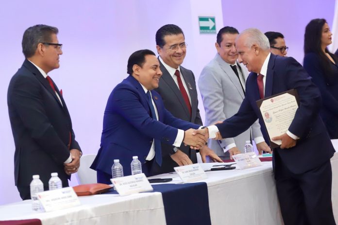 Durante esta ceremonia, el magistrado presidente Moreno Guillén agradeció al rector de la Fldch, Gabriel Enrique Bravo del Carpio, la oportunidad de participar en esta ceremonia, y celebrar el inicio de una nueva etapa en la vida profesional de estas y estos egresados, invitándoles a que, sin importar la vertiente que elijan para desarrollarse, lo hagan siempre con felicidad y ahínco.