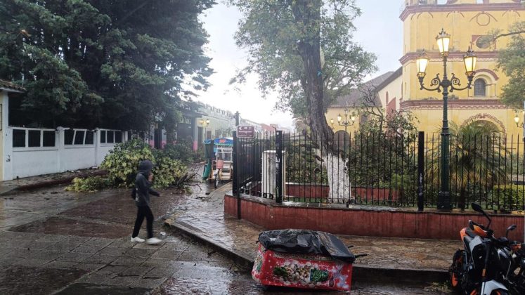 En san Cristóbal de la casas, derivado de intensas lluvias y fuertes vientos, a provocado que láminas salgan volando y personas con crisis nerviosa.