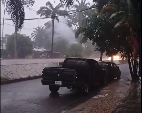 Central Oriente por Bodega Aurrera el transformador hizo corto y está incendiándose por las lluvias.