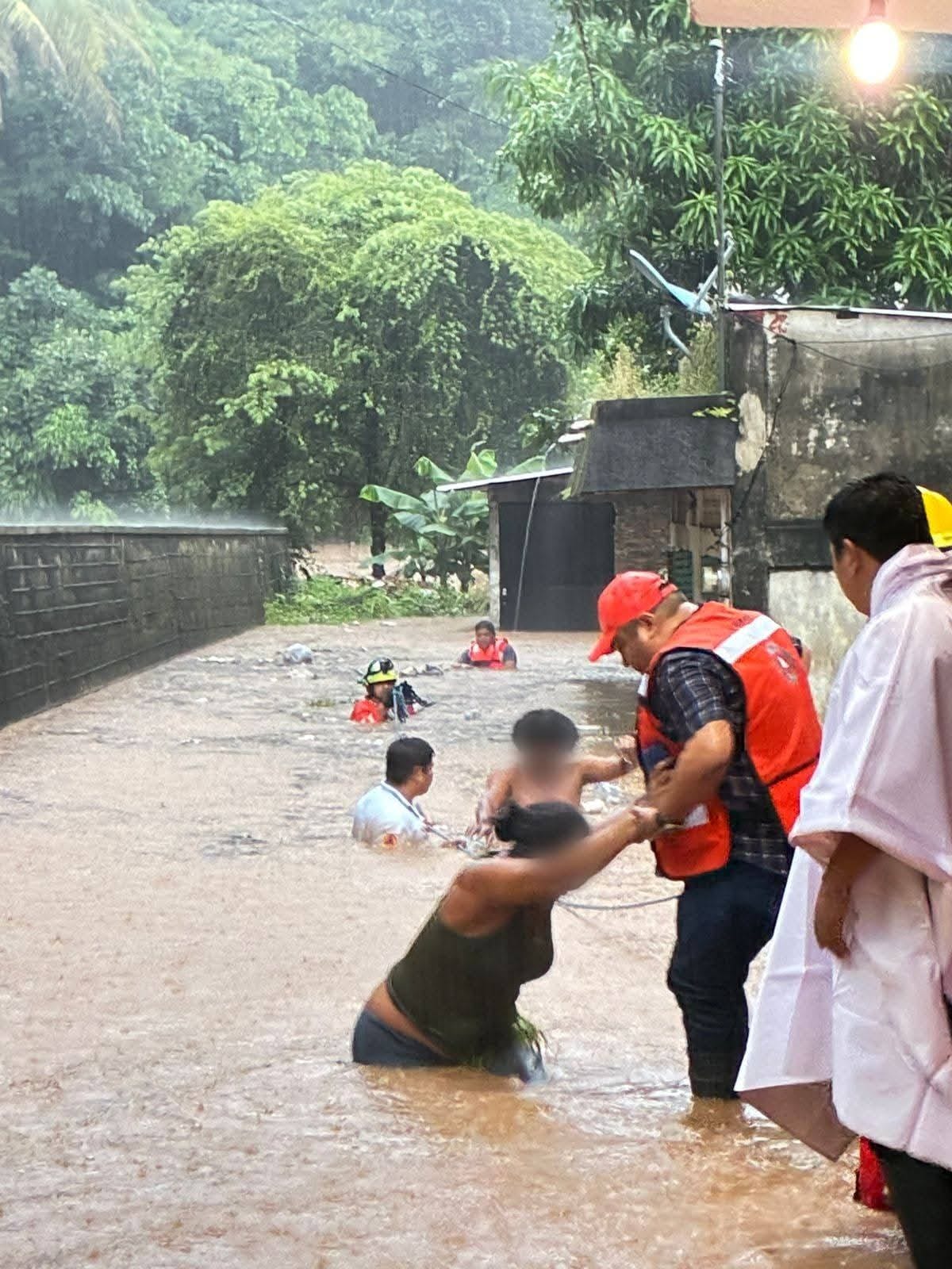 Tapachula, Chiapas 8 de Septiembre del 2025.- Autoridades de protección civil y cuerpos de emergencia se encuentran en este momento evacuando de manera preventiva a familias que viven en colonias de las partes más bajas de la geografía local.