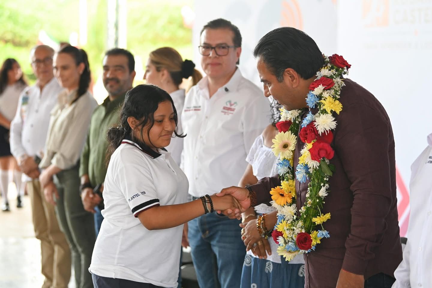 El titular del Instituto de la Infraestructura Física Educativa, Carlos Ildelfonso Jiménez Trujillo, destacó que se invierten más de 10 millones de pesos en Escuintla para la construcción de aulas, sanitarios, red eléctrica y espacios dignos en escuelas, y anunció nuevas aulas didácticas en la primaria 24 de Octubre.