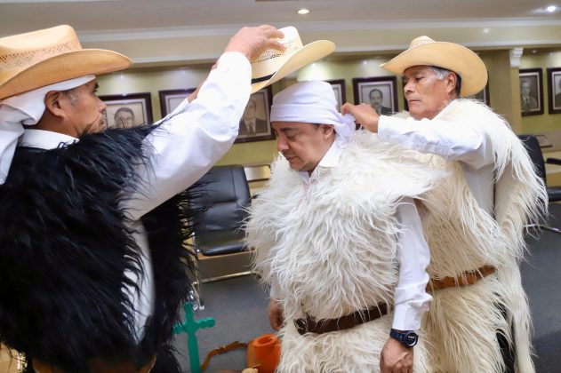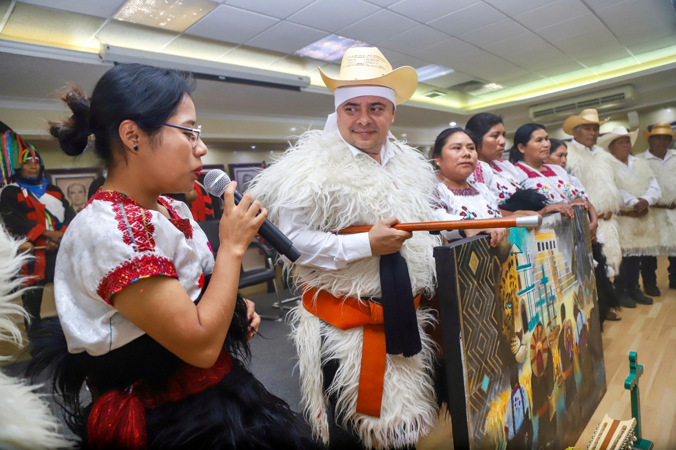 Durante este encuentro, el magistrado Moreno Guillén fue honrado con el traje típico de la región y participó en una ceremonia tradicional en donde le entregaron un bastón de mando, que simboliza el respaldo de su comunidad y el reconocimiento a su liderazgo en esta casa de la justicia.