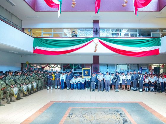 Desde la sede del Gobierno Municipal, el alcalde Yamil Melgar, acompañado de autoridades civiles, militares y educativas, encabezó la ceremonia conmemorativa del CCI Aniversario de la Incorporación de Chiapas al Pacto Federal.