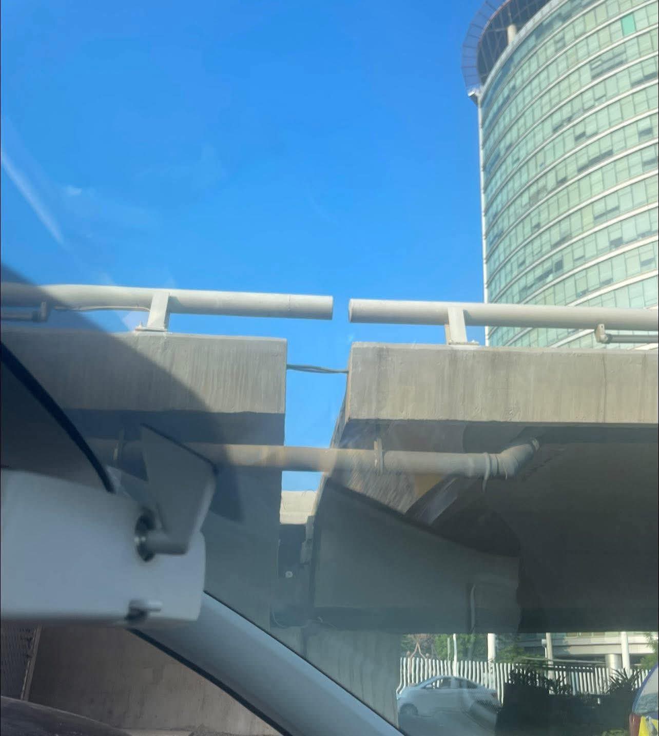 Se desprende una parte del puente de la Torre Chiapas en Tuxtla Gutiérrez, reportan que no hay paso.