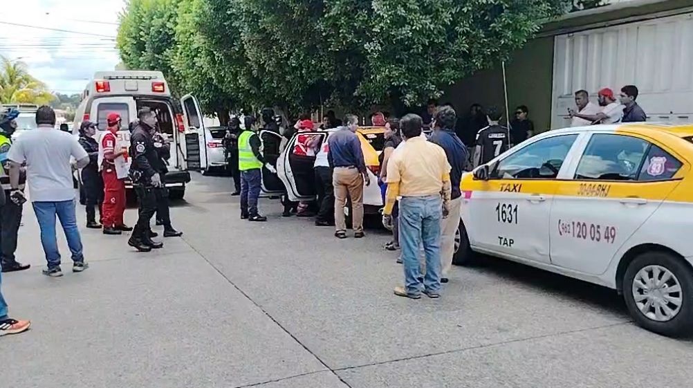 Tapachula, Chiapas; 16 de septiembre de 2025. – Alrededor de las 12:10 horas de este martes se reportó una emergencia médica en la avenida Las Palmas y privada Framboyanes, en el fraccionamiento Laureles 1, donde un taxista habría sufrido un posible infarto al interior de su unidad.