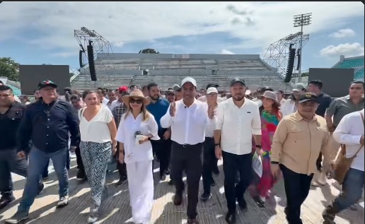 Estamos en el Estadio Olímpico de Tapachula revisando los pormenores para recibir con mucho cariño a nuestra presidenta Claudia Sheinbaum Pardo.