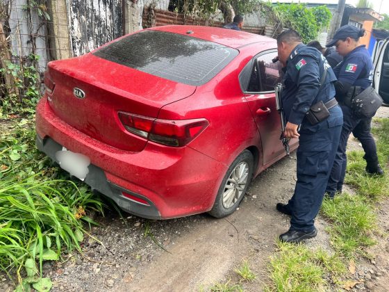Derivado de patrullajes preventivos y disuasivos en la colonia Emiliano Zapata de la Perla del Soconusco, elementos de la fuerza interinstitucional detectaron un vehículo marca Kia de color rojo con placas de circulación del estado de Chiapas en calidad de abandono.
