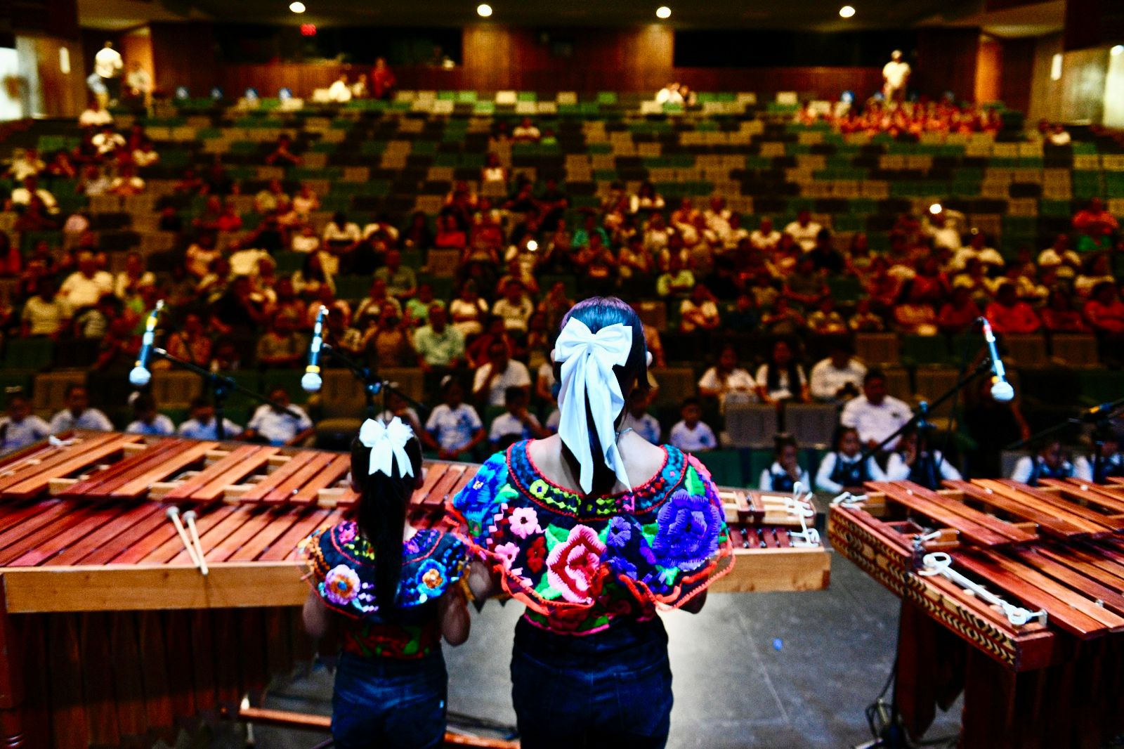 El Teatro de la Ciudad “Amparo Montes” se convirtió en escenario de fiesta y tradición con la participación de distintos grupos marimbísticos integrados por alumnos de instituciones educativas del nivel básico, quienes deleitaron al público con su destreza interpretativa y entusiasmo por la música chiapaneca.
