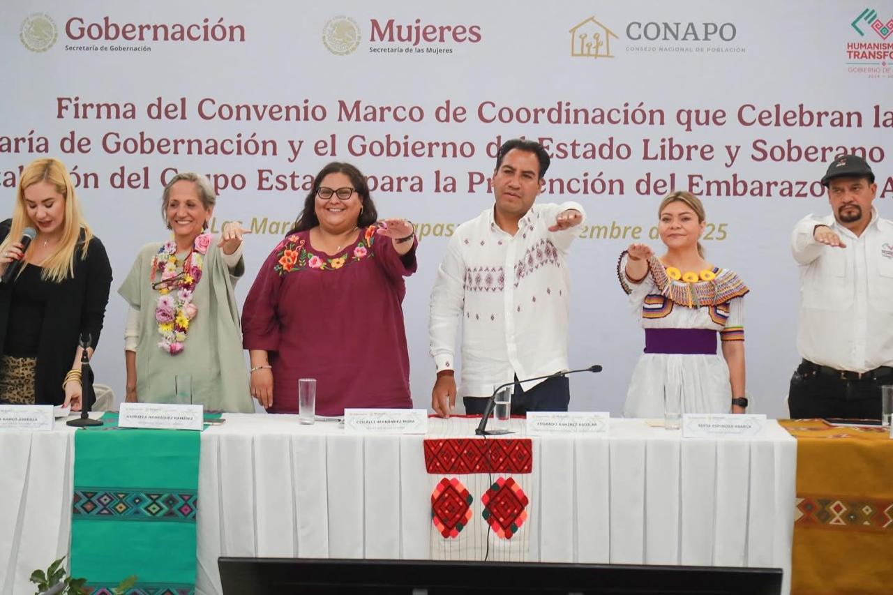 La secretaria de las Mujeres del Gobierno de México, Citlalli Hernández Mora, junto al gobernador Eduardo Ramírez Aguilar, visitó el municipio de Las Margaritas para encabezar la conmemoración del Día Nacional para la Prevención del Embarazo no Planificado en Adolescentes. En este marco, atestiguaron la firma del convenio de coordinación entre la Secretaría de Gobernación y el Gobierno de Chiapas y la reinstalación del Grupo Estatal para la Prevención del Embarazo en Adolescentes (GEPEA), e inauguraron el Centro LIBRE para las Mujeres.