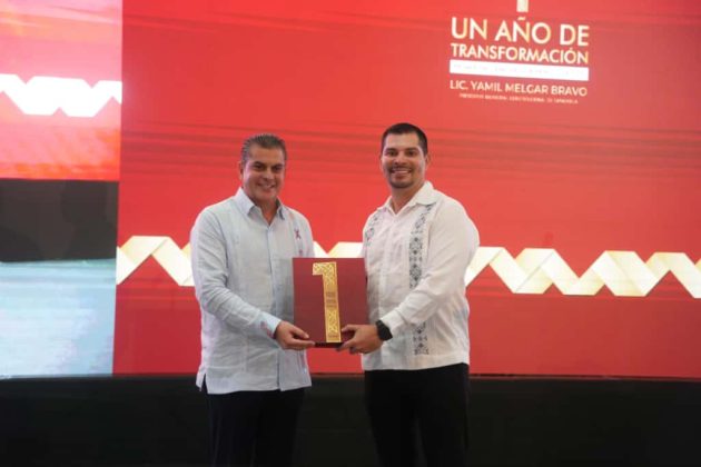Tapachula, Chiapas; 30 de septiembre de 2025.- En representación del gobernador del estado, Eduardo Ramírez Aguilar, el secretario de Seguridad del Pueblo, Óscar Alberto Aparicio Avendaño, asistió al Primer Informe de Gobierno del Presidente Municipal Constitucional de Tapachula, Yamil Melgar Bravo, aliado fundamental para la pacificación del estado, respaldando los esfuerzos realizados en la región.