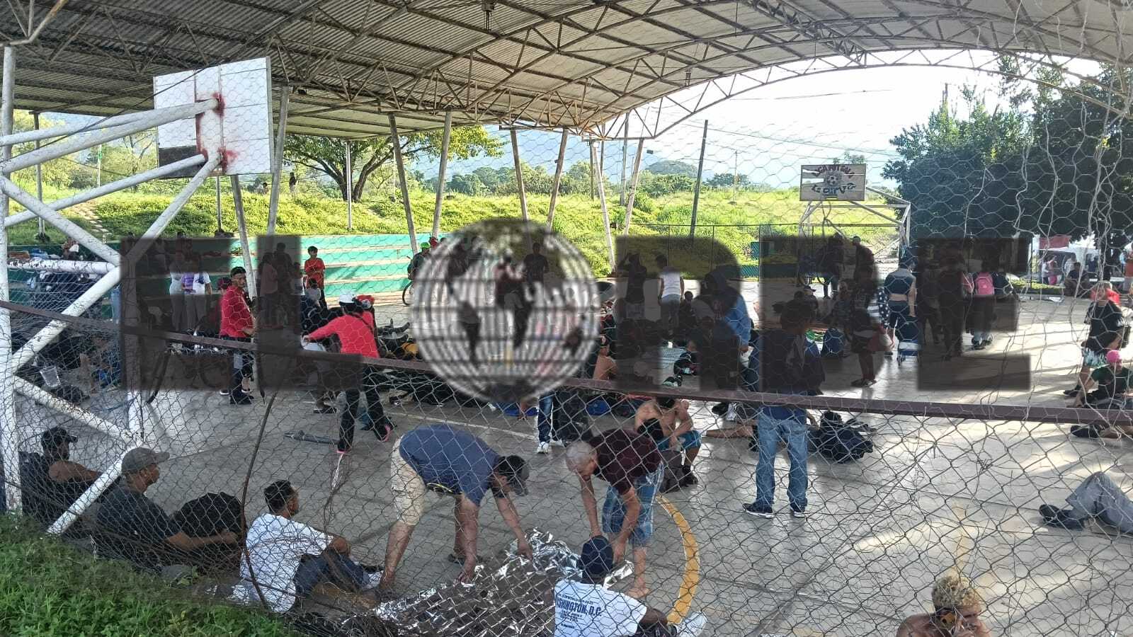 HUIXTLA, Chiapas 2 de Octubre.- Los migrantes que recorren la costa de Chiapas, con el objetivo de llegar a la Ciudad de México, llegaron aste jueves al domo del Barrio Guadalupe en el municipio de Huixtla, procedentes del municipio de Huehuetán.